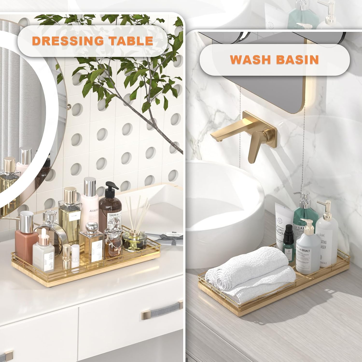 - Considerate Design: This bathroom trays for counter is ready to use without any installation required; Upgraded embedded welding design enhances stability and aesthetics; Raised edge prevent items from slipping; 4 non-slip pads on the bottom protect surfaces from scratches; Simplify your cleaning routine with just a quick wipe-down using a damp cloth, saving you time and hassle