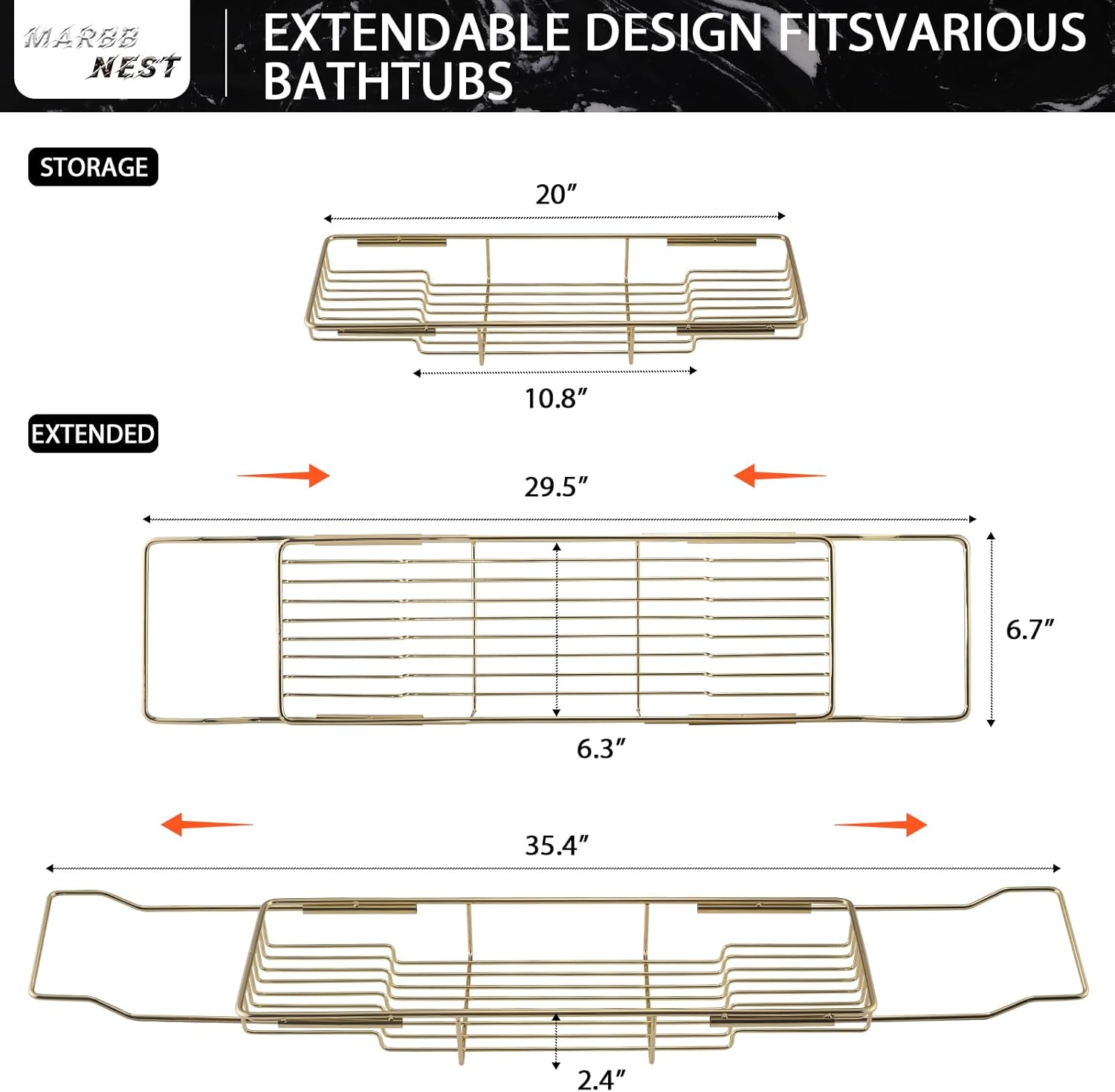 - 【Expandable Design】Adjustable from 29.5" to 34.5", this bathtub caddy fits most tubs securely with sturdy stainless steel brackets.