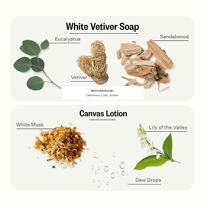 - Canvas Lotion: Clean and refreshing fragrance combines crisp linen, white musk, and sweet lily of the valley with a sparkling dewdrop accord. This hand and body lotion is a nourishing and fast-absorbing moisturizer that hydrates with plant-based ingredients while lightly scenting the skin. 10 fl oz.