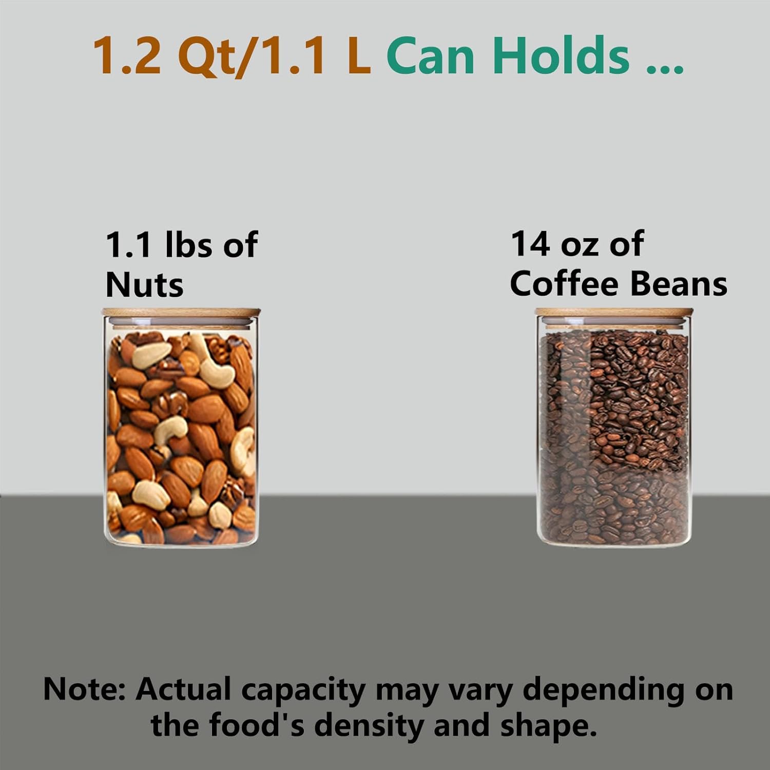- [Airtight Storage Jar] Each glass jar is sealed around the wooden lid with a comprehensive silicone sealing ring, creating a moisture-proof environment that keeps your dry food clean and fresh.