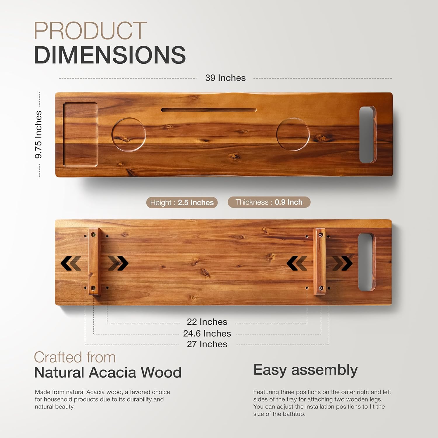 - Precise Dimensions: Measuring 39 inches in length, 9.75 inches in width, and 2.5 inches in height, with a tray depth of 0.9 inch, providing ample space for various items during your bath.