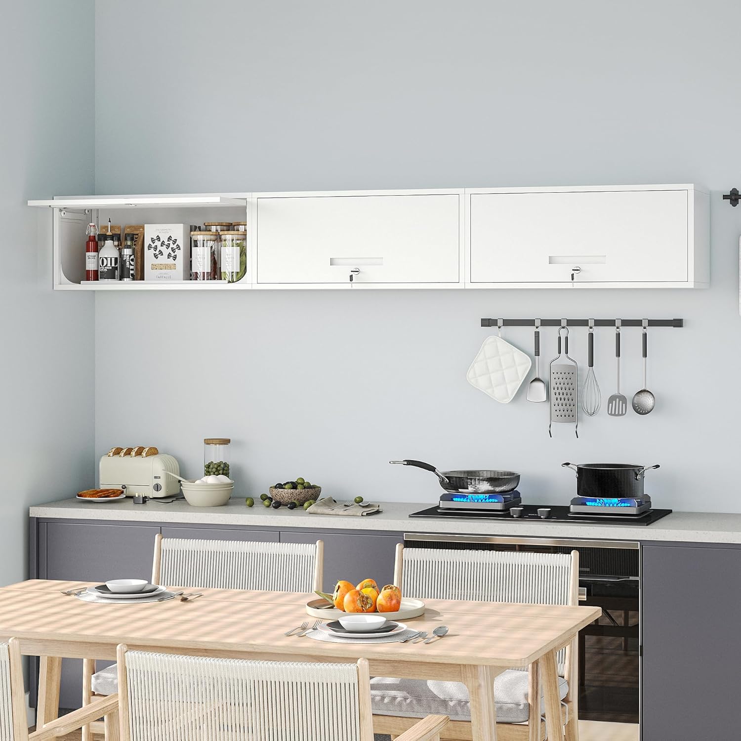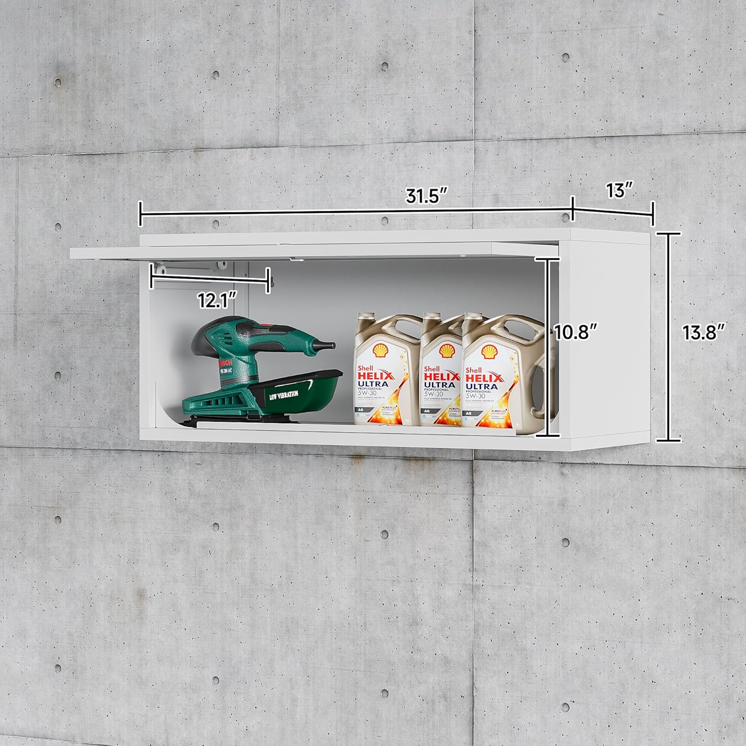 Metal Wall Storage Cabinet with Up-flip Door, Wall-Mounted Storage Cabinet for Garage, Warehouse, Home, Office, Assembly Required (White)