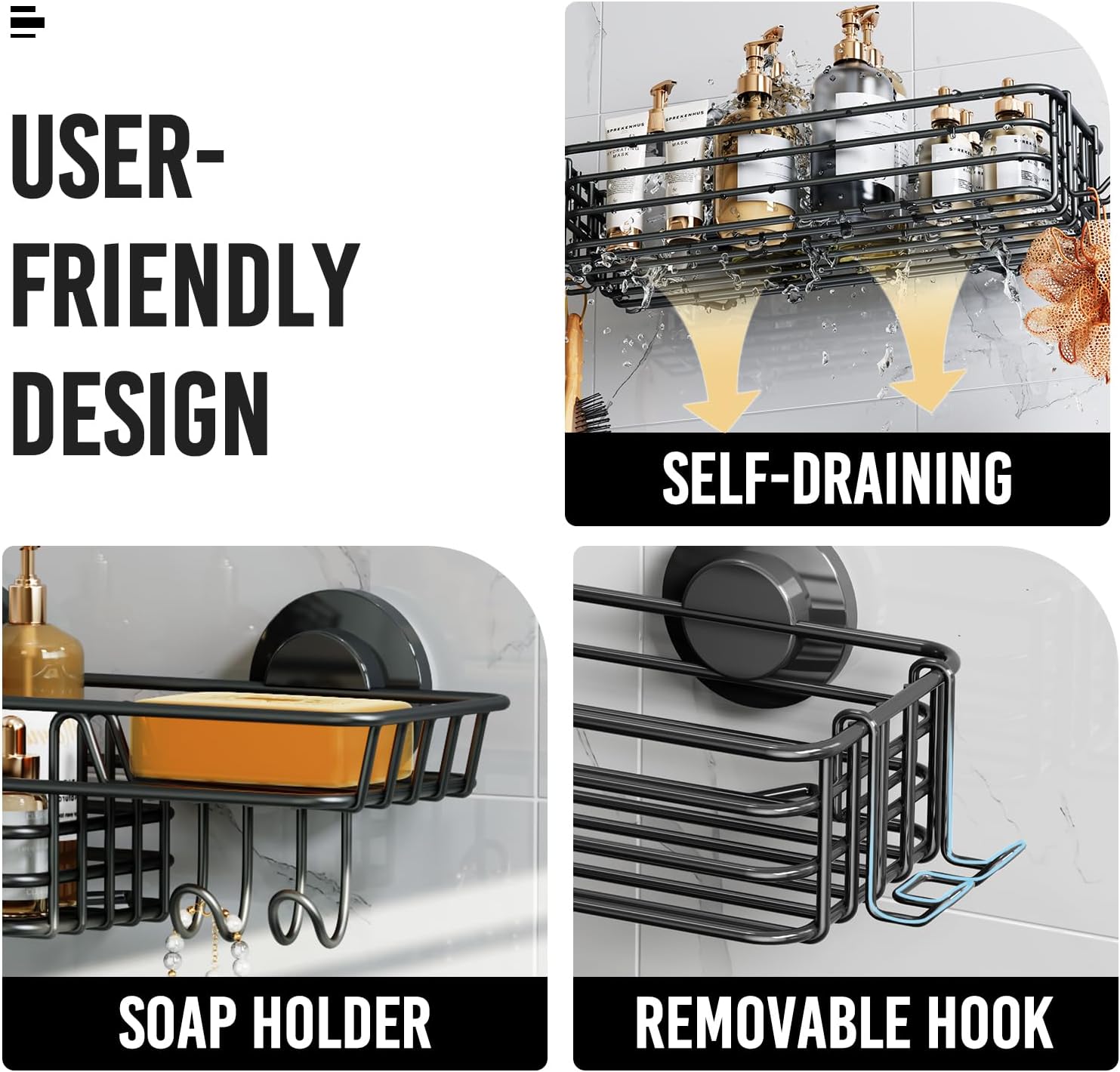 - Rustproof & Fast Draining: Shower shelves for inside shower is made of Stainless Steel which not only prevents rust but also stands up to times. Whit all-around drainage design, the black shower caddy has maximum air ventilation and water dripping away. Keep your bath products air dry quickly and clean