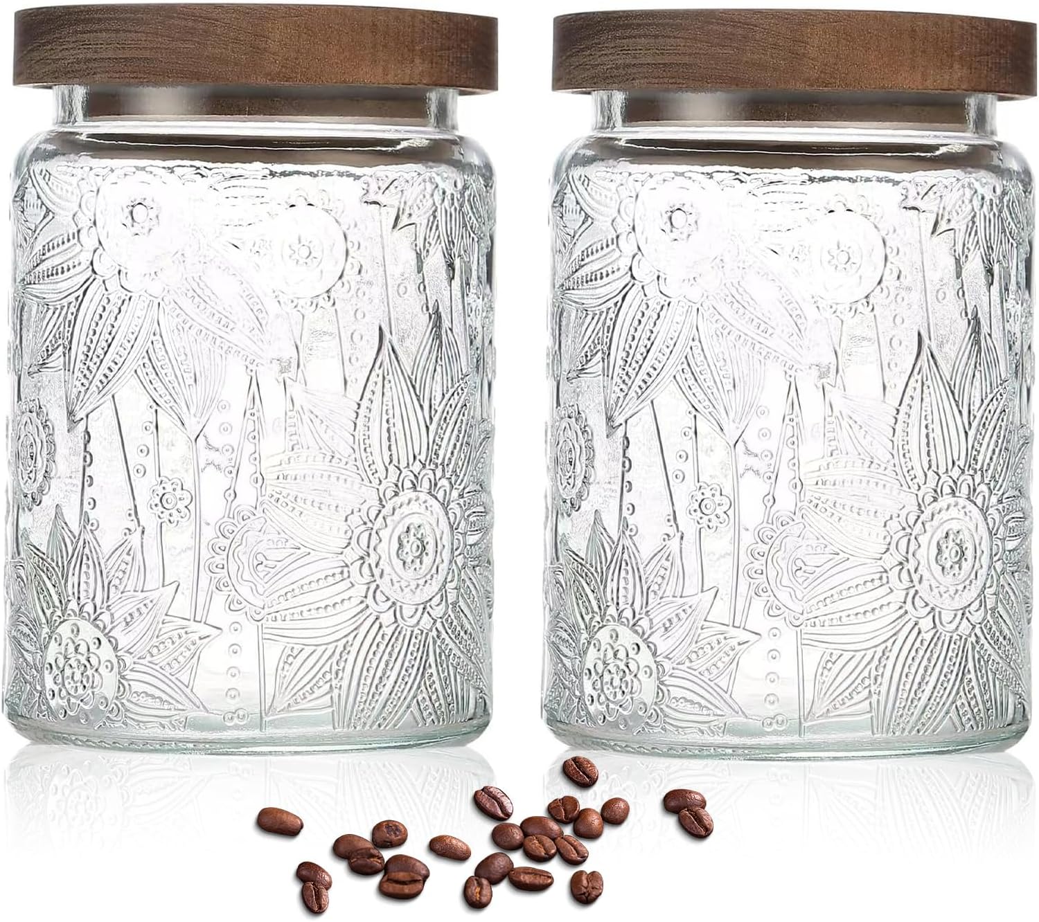 - 【Elegant Vintage Design】Featuring intricate sunflower and begonia patterns, along with random wood grain lids, these Vintage storage jar with wood lid create a unique and retro decorative effect. The transparent glass design allows you to easily check the status and quantity of stored food, making it both practical and aesthetically pleasing for your kitchen counter, pantry, or living room.
