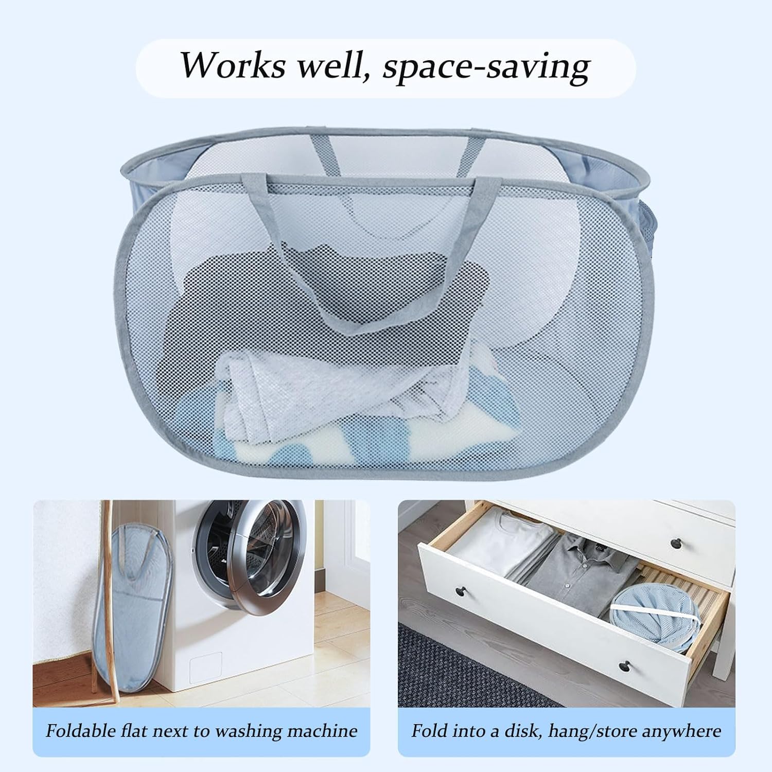 - šš«šššš¢ššš„ - Collapsible mesh pop-up laundry hamper has great balance & has long handles and side pockets, wide opening for easy access, light & collapse. Easy to use, store, and carry laundry up & down stairs