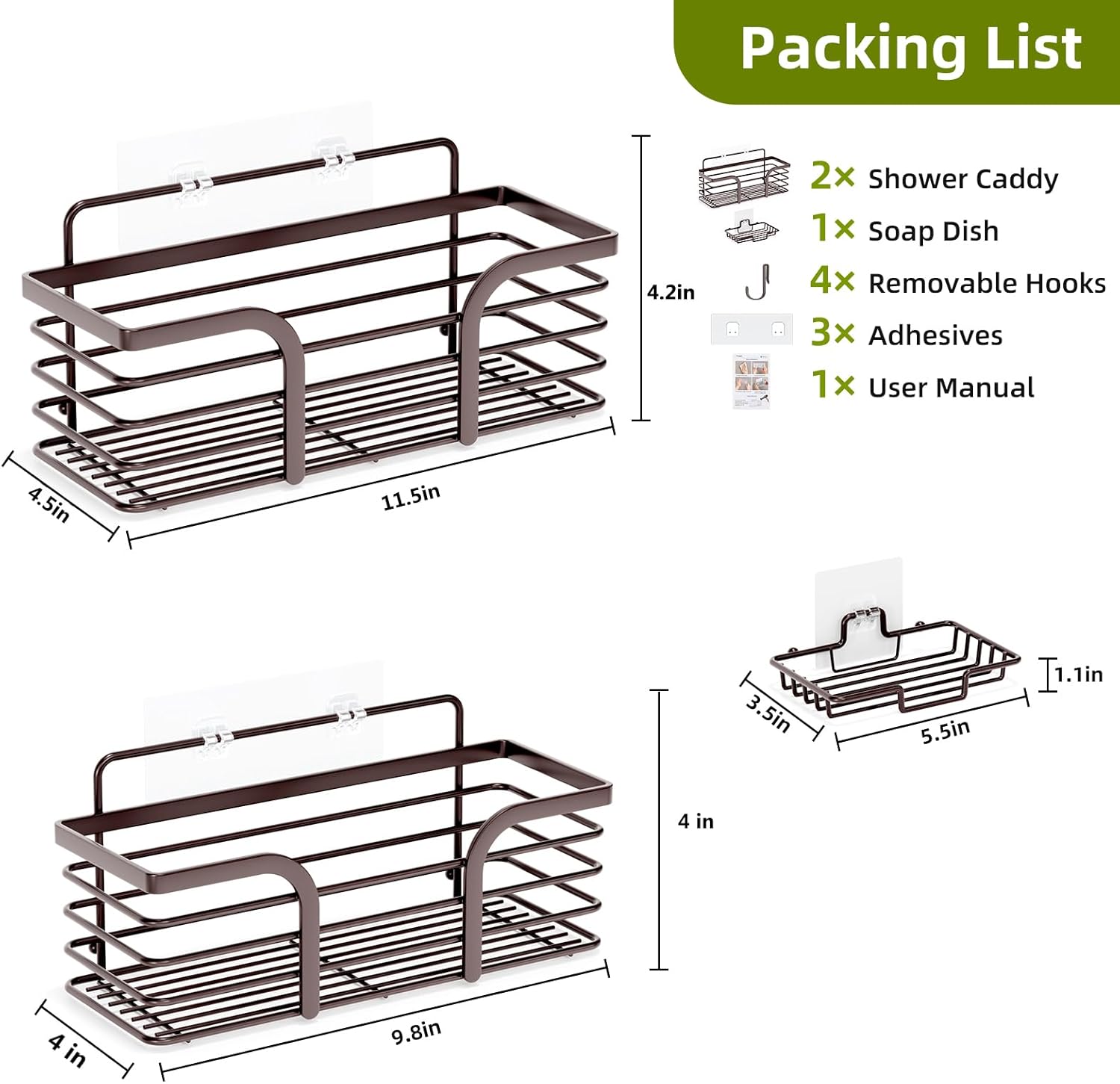 - 【Strong Adhesion Up to 40LBS】:The upgraded version of the transparent non-marking adhesive provides shower organizer with stronger stability, more durable than the suction cup. No worry about falling down