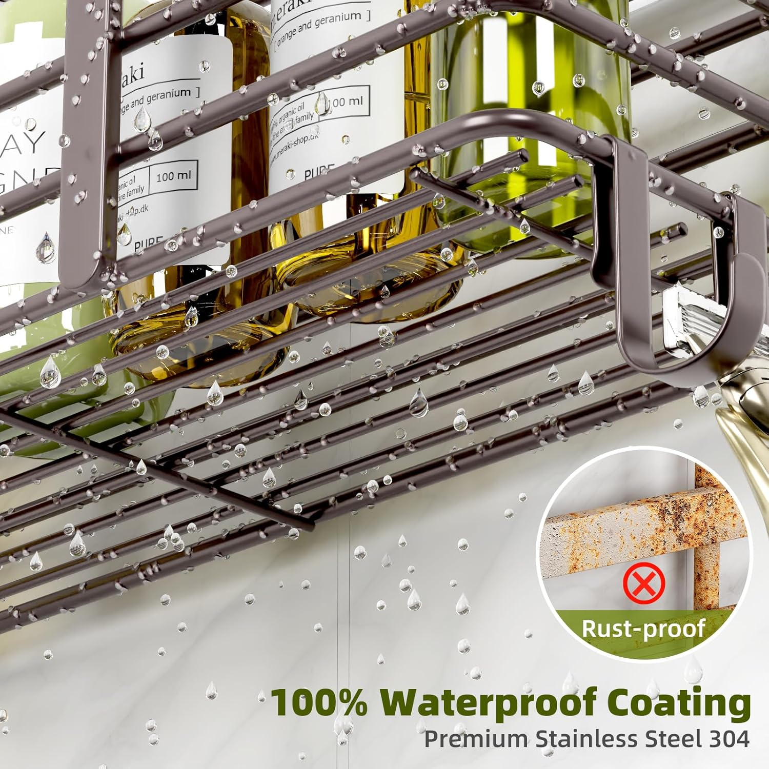 - 【Waterproof & Rustproof】:This bathroom shower caddy is made of premium stainless steel, which is made to last for years. Hollow bottom design allows drainage and dry quickly to avoid breeding bacterial