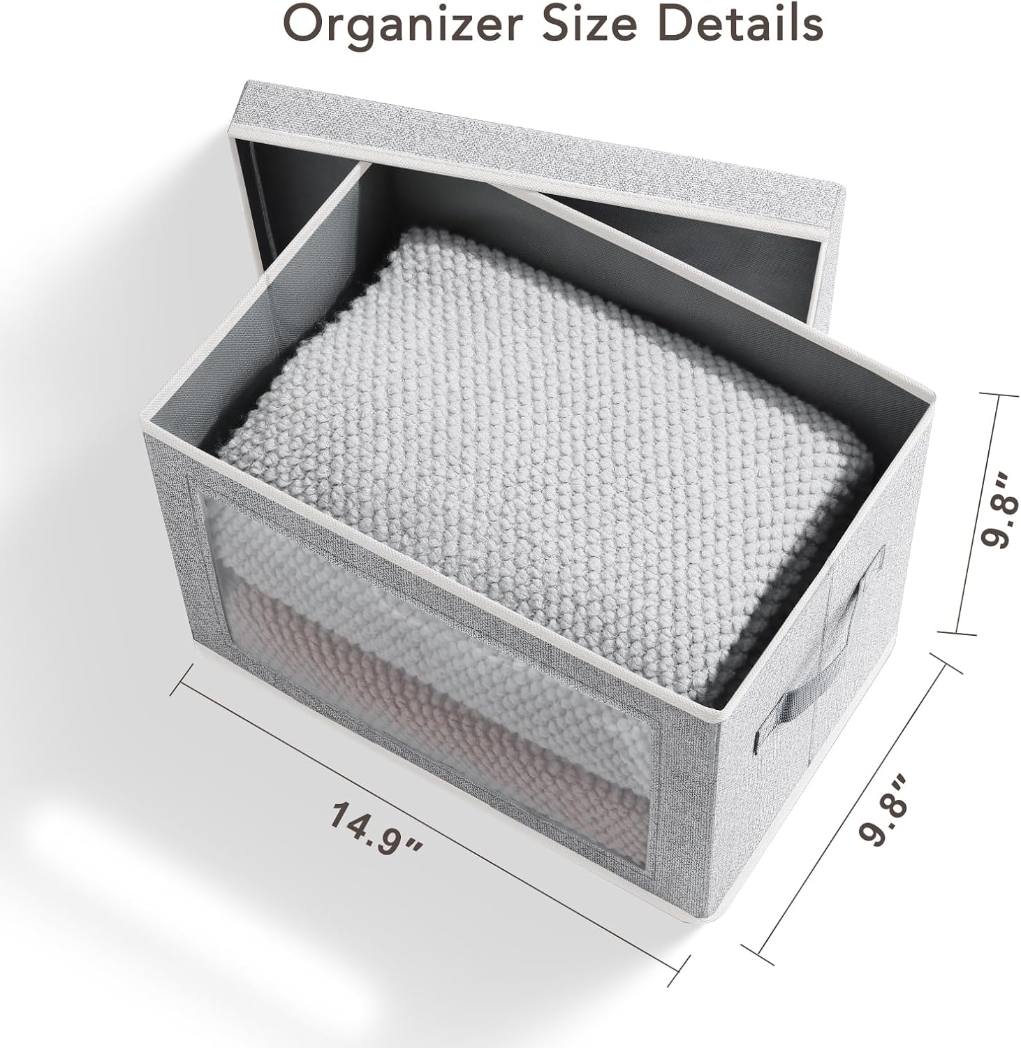 Storage Box with Lids - 5 Pack Foldable Clear Window Storage Bins, Large Decorative Storage Bins with Handles, Storage Containers for Clothes, Towel, Blanket, Sheet, Light Grey