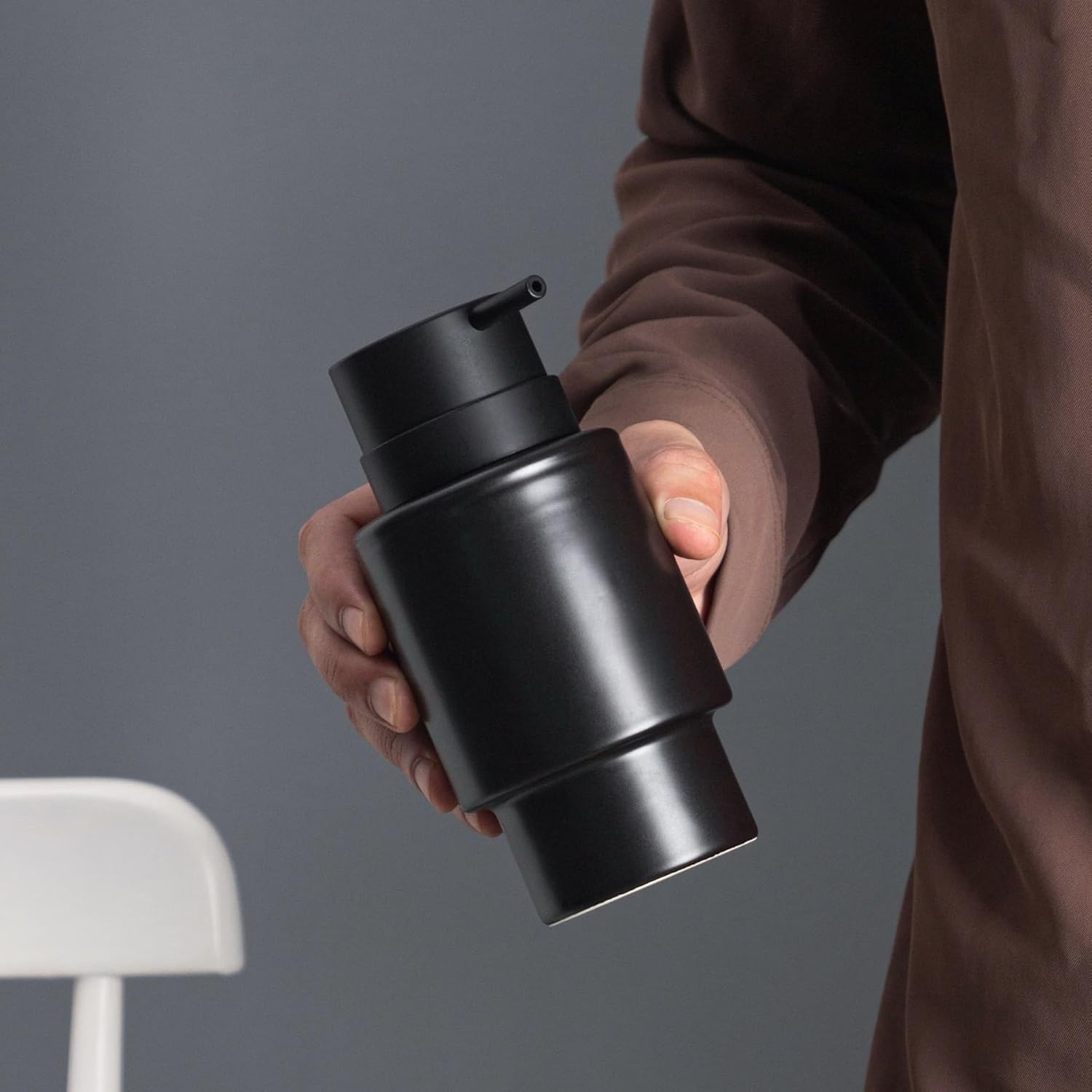 Fun Elements Black Soap Dispenser, 12oz Luxury Bathroom Soap Dispenser, Creamic Liquid Dispenser for Bathroom, Modern Minimalist Style