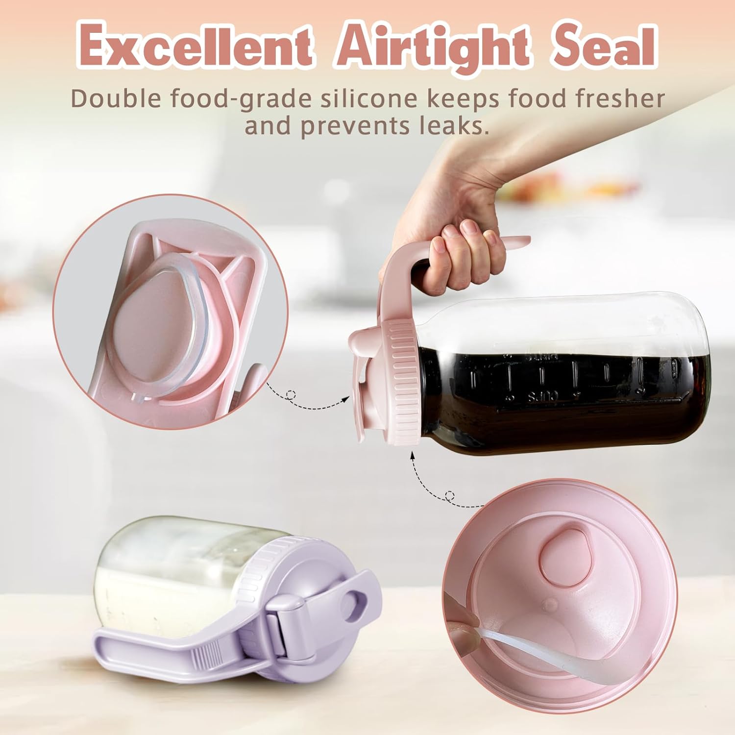 2 Pack Mason Jar with Pour Spout Lid V-shaped, 2 Quart Iced Tea Pitcher Double Leak Proof, 64 oz Drink Pitcher for Breastmilk, Sun Tea, Juice, Coffee Creamer, Formula Pitche