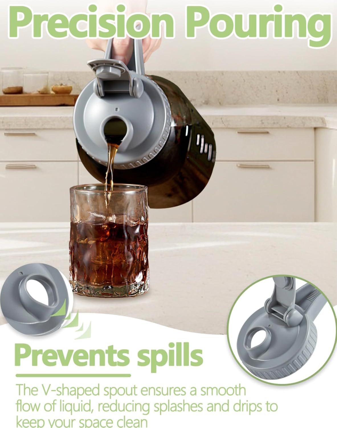 - ✔️100% Leak-Proof : The creamer pitcher with two silicone seals inside, glass pitcher with lid offers enhanced leak-proof performance, ensuring your beverages stay securely contained without any unexpected spills
