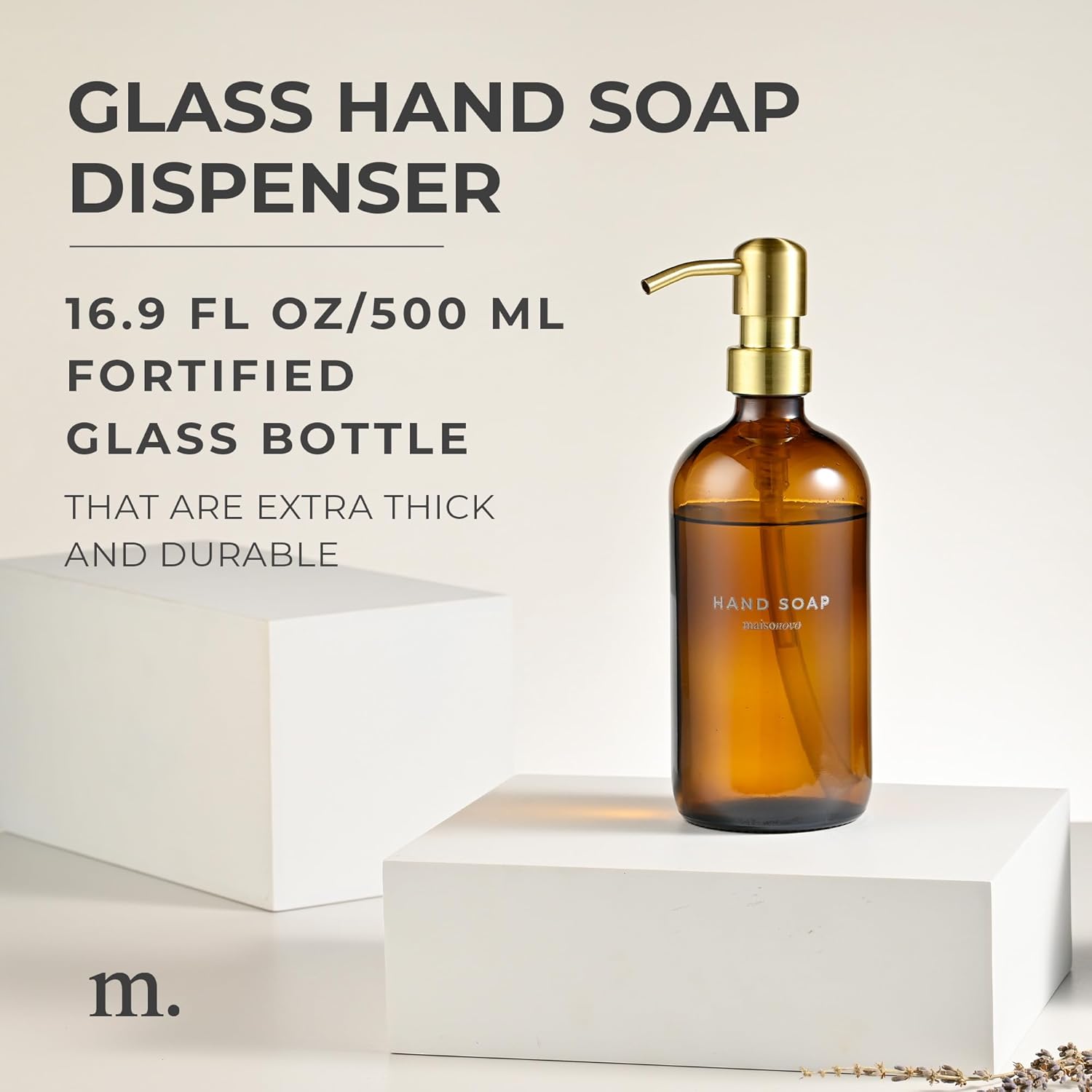 MaisoNovo Soap Dispenser 1-Piece Set | 16.9oz Amber Bottles with Gold Stainless Steel Pump