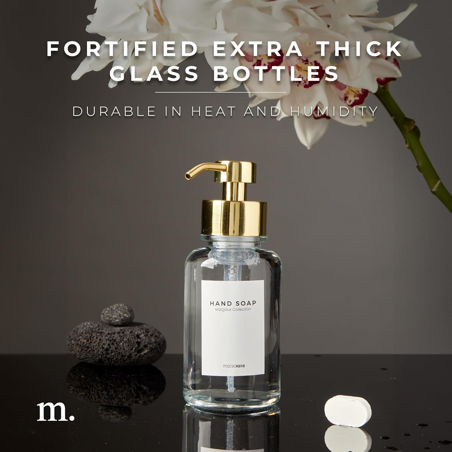 MaisoNovo Glass Foaming Hand Soap Dispenser 14 Oz | Gold Foaming Soap Dispenser Clear Bottle Gold Pump x 1 w/Labels