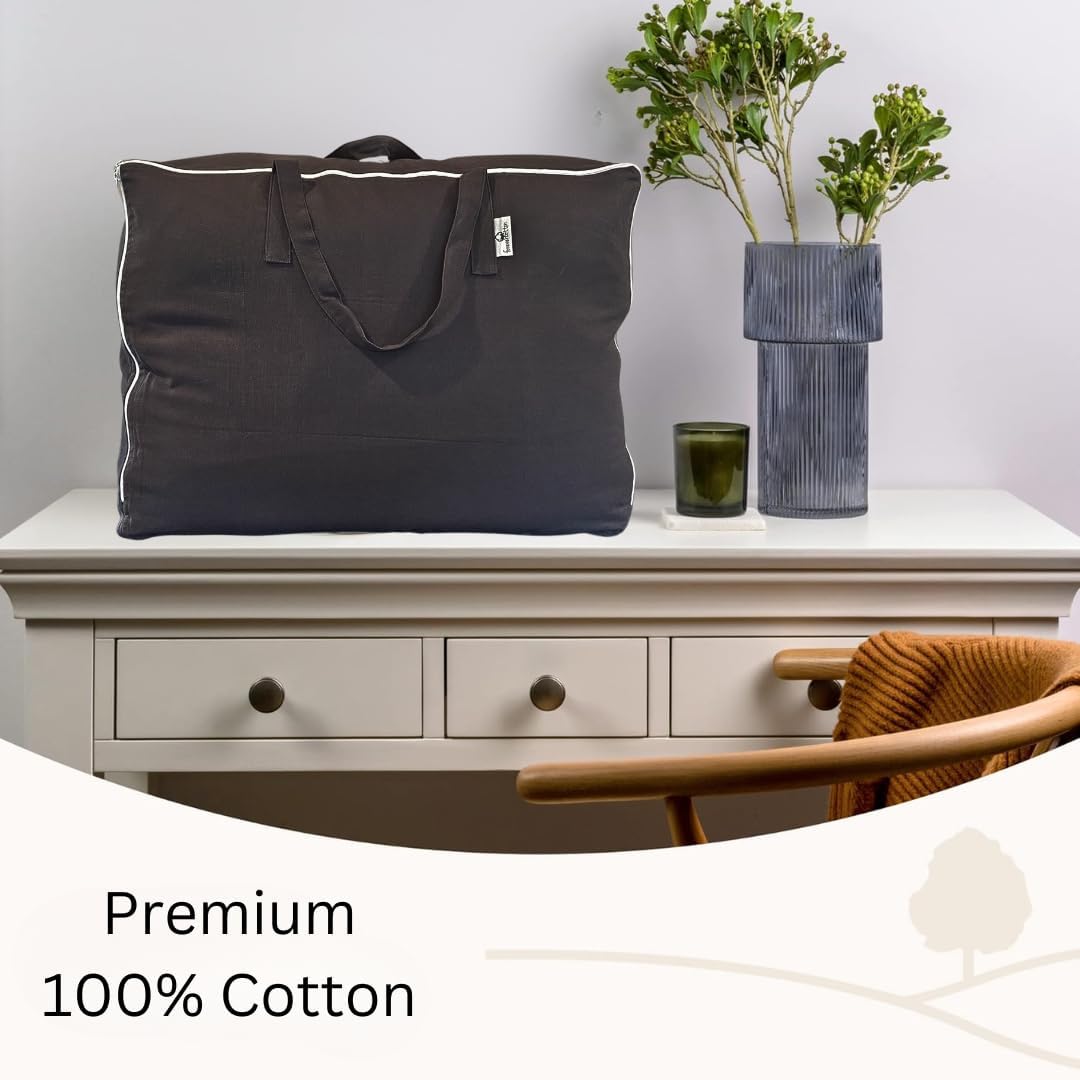 - DURABLE STORAGE: Made from pure cotton canvas fabric, this bag provides durable and breathable storage for bedding and linens.