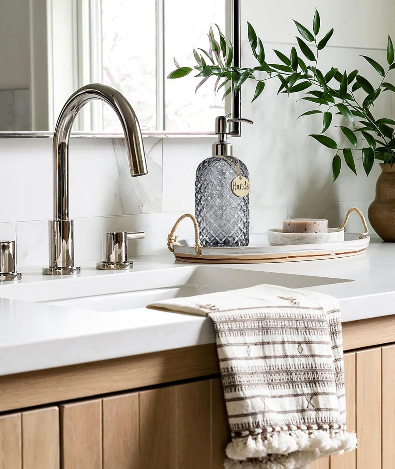 - Attractive Bathroom Soap Dispenser With Timeless Diamond Features Design. You Can Fill It With Your Favorite Lotion or As a Seasonal Decor.