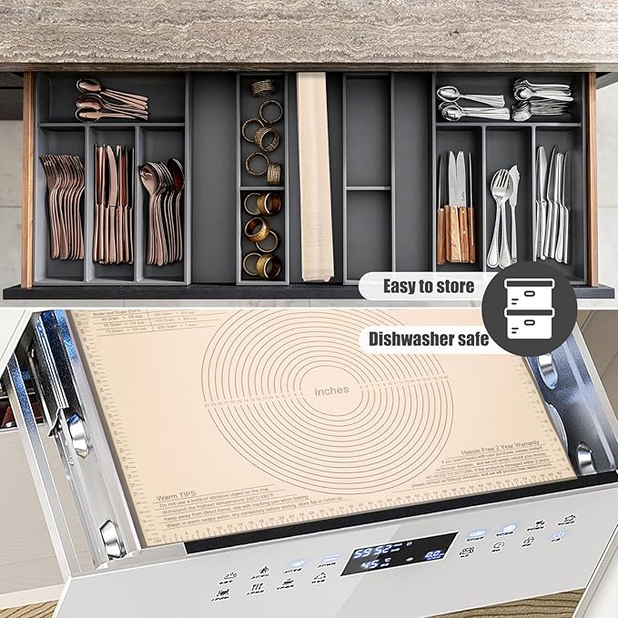 - 【Easy to Clean and Store】: As the excellent nonstick surface design, our pastry mats are super easy to clean and dishwasher safe. Just rinsed it by warm soapy water and let air dried. Stored it by fold or roll up, it’s great to save space. A must-have accessory for any baking.