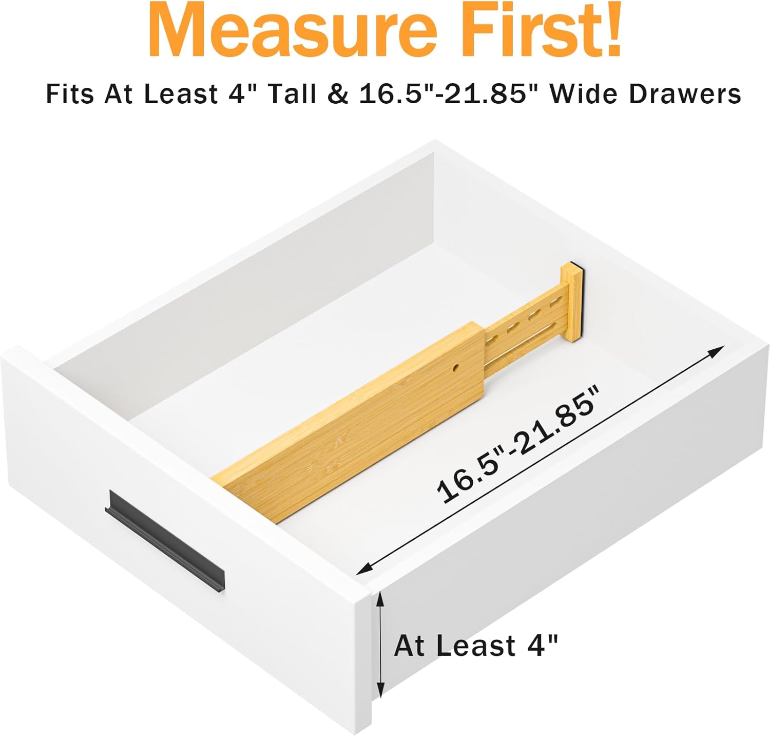 Bamboo Drawer Dividers 4" High, 16.5-22" Adjustable Drawer Organizers for Clothes,Expandable Dresser Separators in Bedroom/Kitchen/Bathroom/Office Organization and Storage,6 Pack