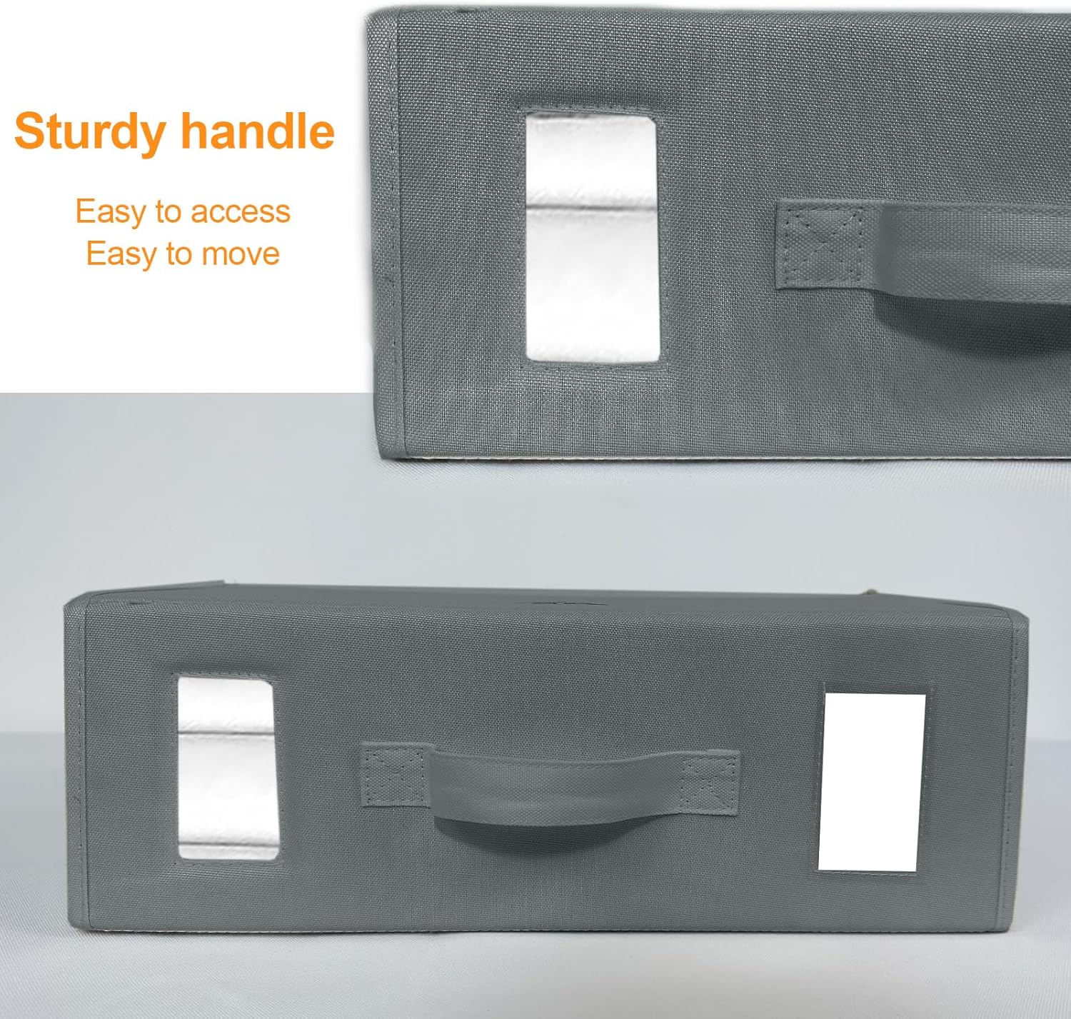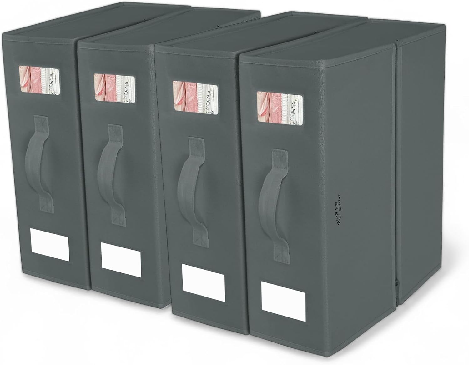4C'Son Foldable DOUBLE ZIPPERS Bed Sheet Organizer, Fabric Storage Bins for Bed Sheets, Linen Bedding Organizer for Closet with Window and EXTRA STURDY handle (4 PACK - GRAY)