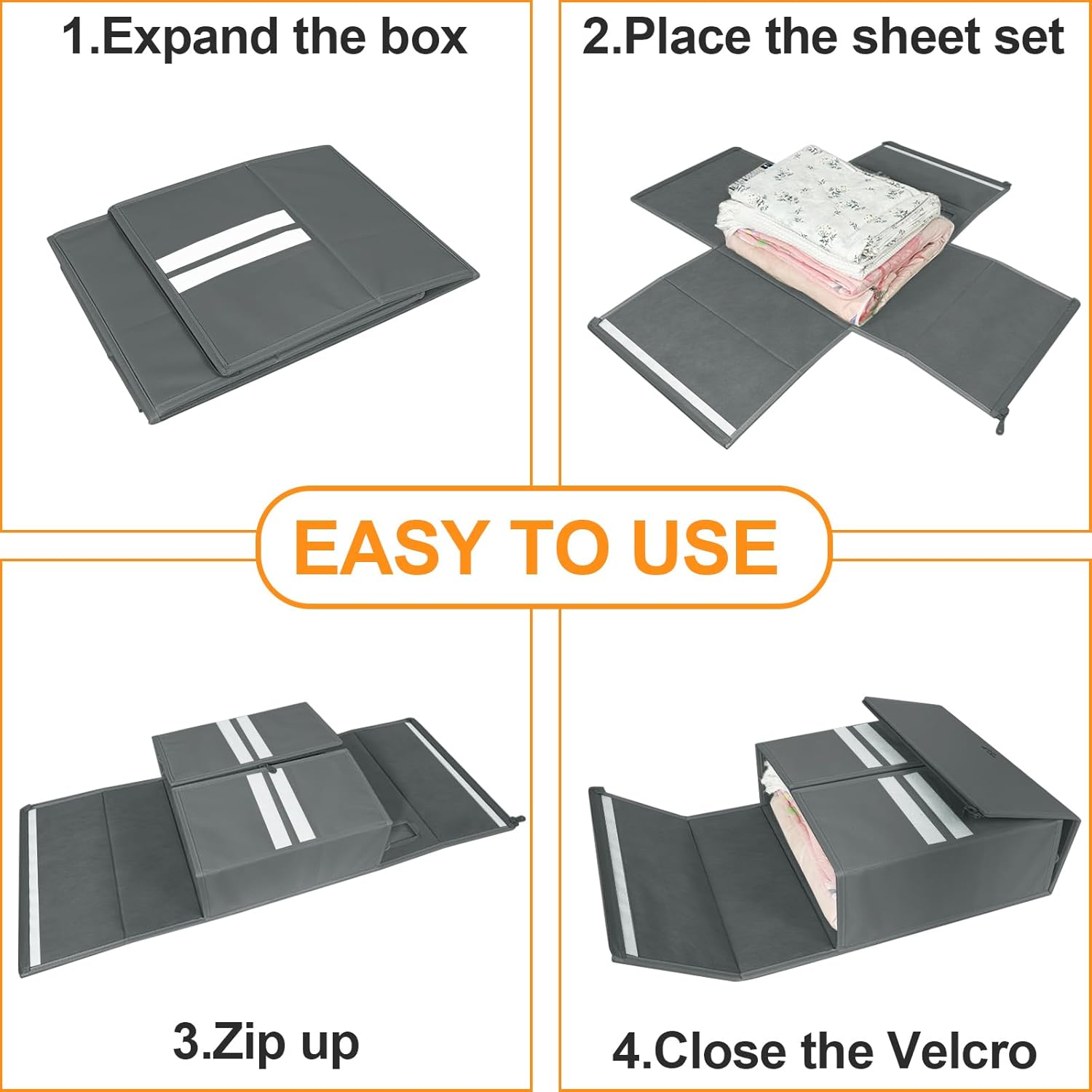 - EASY TO FOLD WITH DOUBLE ZIP AND VELCO – Our Foldable Organizer is extremely easy to use and tough. Simply place your linen sheet in the center and zip the first time, continue with velcro and zip the second time to close.
