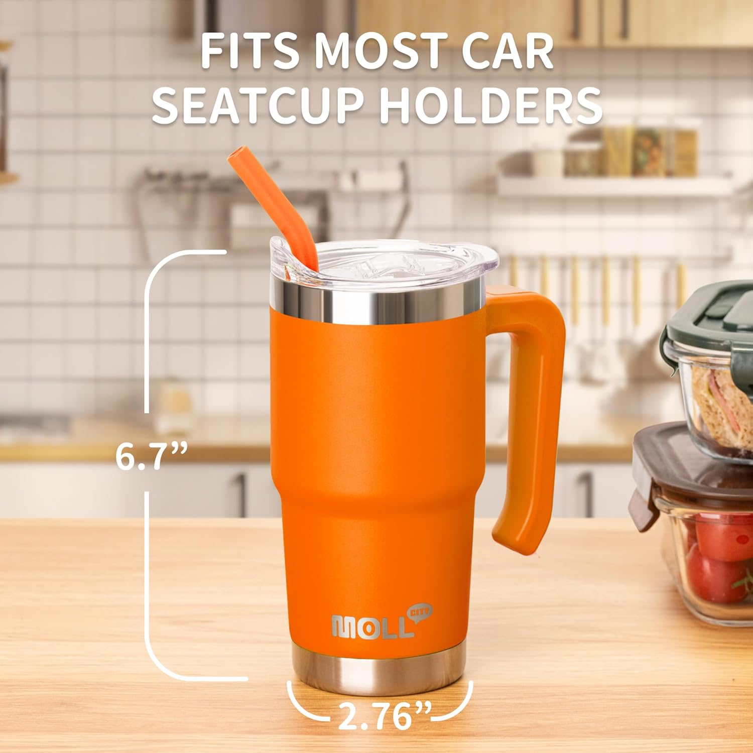 Kids Tumbler-16 oz Stainless Steel Double Wall Vacuum Insulated Tumbler Cup with Lid and Straw Travel Coffee Mug with Handle(Orange)