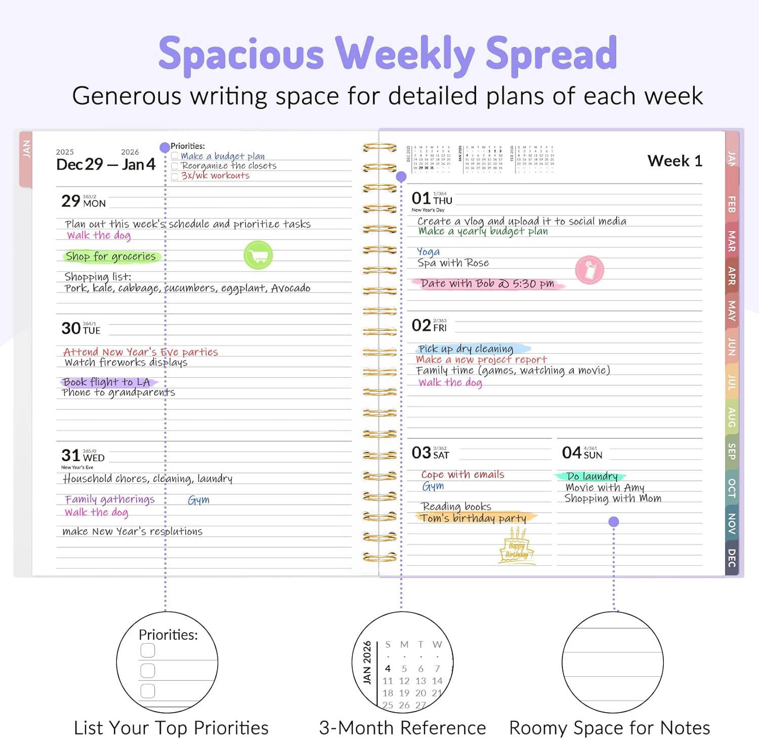 - Spacious Writing Space: Printed on 8.5" x 11" (as big as textbooks) quality paper, a calendar planner has plenty of room to write assignments and track homework. Perfect size for use on your desk.