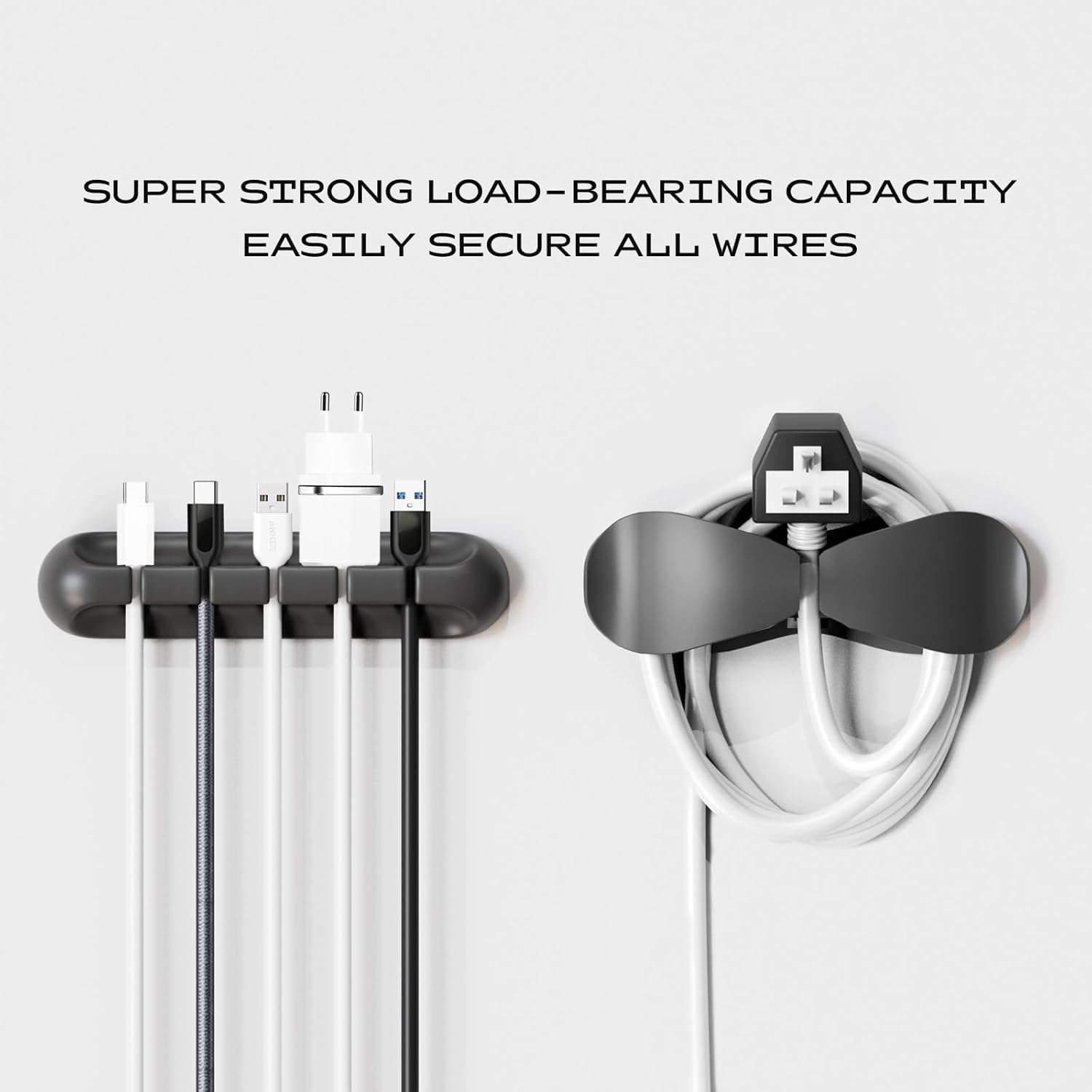 USB Cable Organizer Clips Cord Holder,10 Packs (3-5-7-Slots) Black Self Adhesive Desk Cord Cable Management