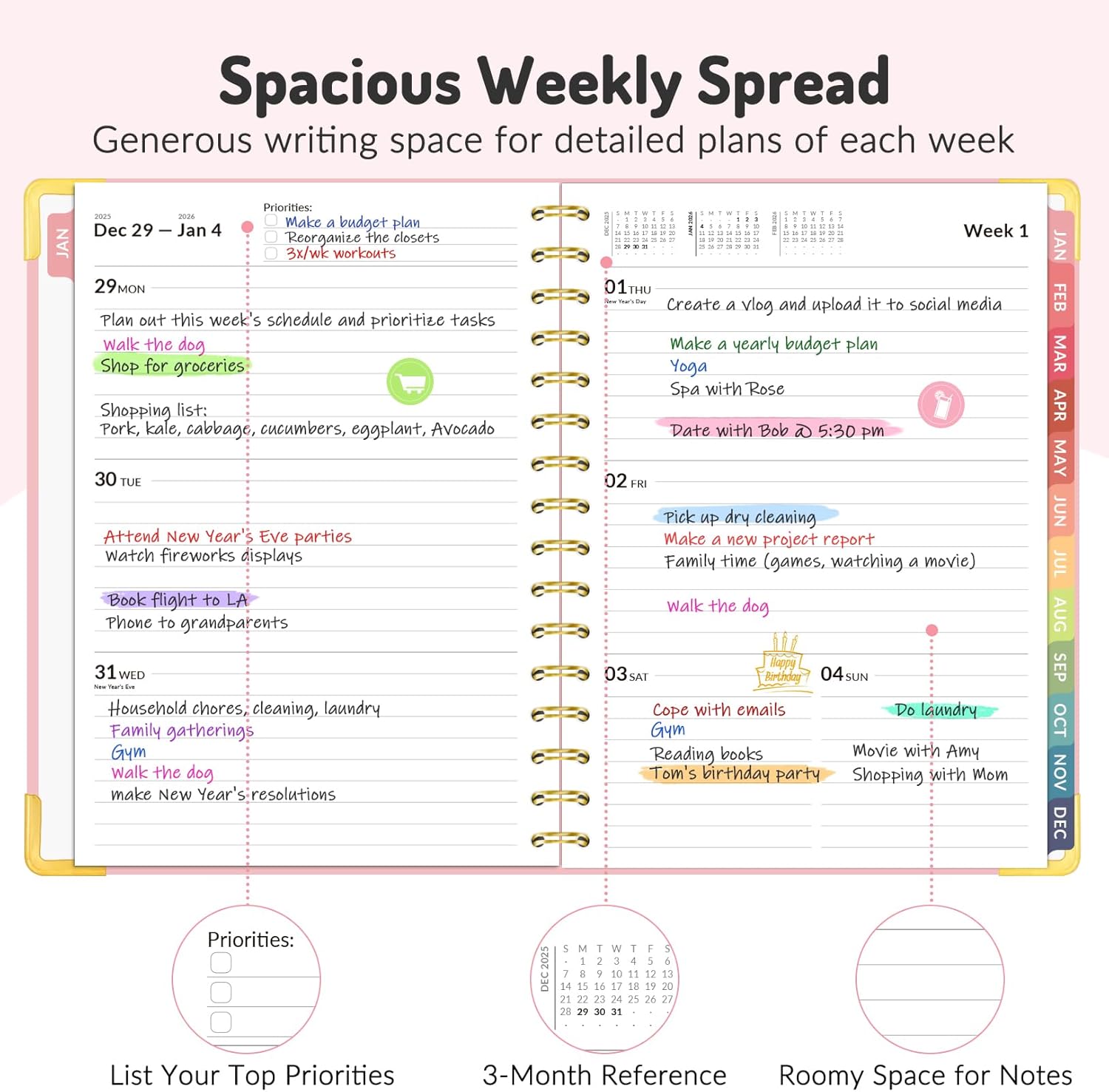 - Monthly & Weekly View: Forvencer agenda planner have adequate space on the monthly calendar blocks and weekly day-to-day pages, which is great for big-picture planning.