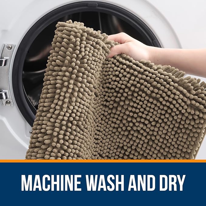 OLANLY Bathroom Rugs 59x24, Extra Soft Absorbent Chenille Bath Rugs, Rubber Backing Quick Dry, Machine Washable Bath Mats for Bathroom Floor, Tub and Shower, Home Decor Accessories, Tan