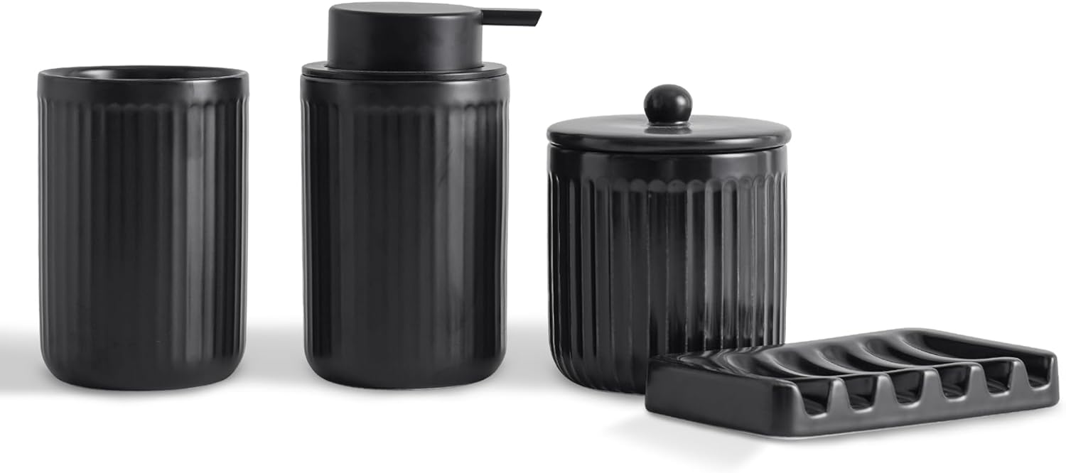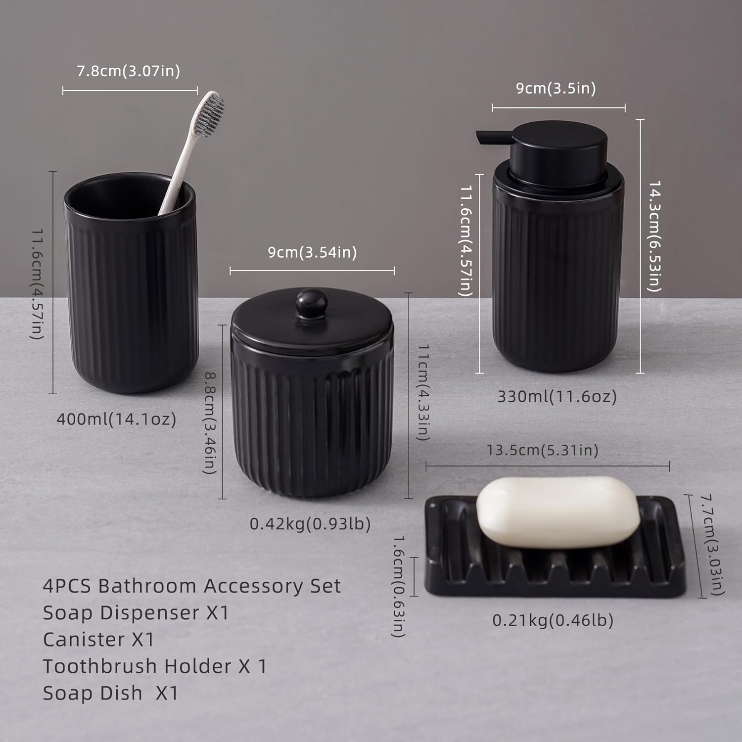 - Space Saving Design:Each accessory in this bathroom set is carefully designed to optimize your bathroom countertop space and keep it neat and organized. Portable and easy to use at home. This bathroom accessory set features a modern and elegant design, making it a highlight in your bathroom décor.