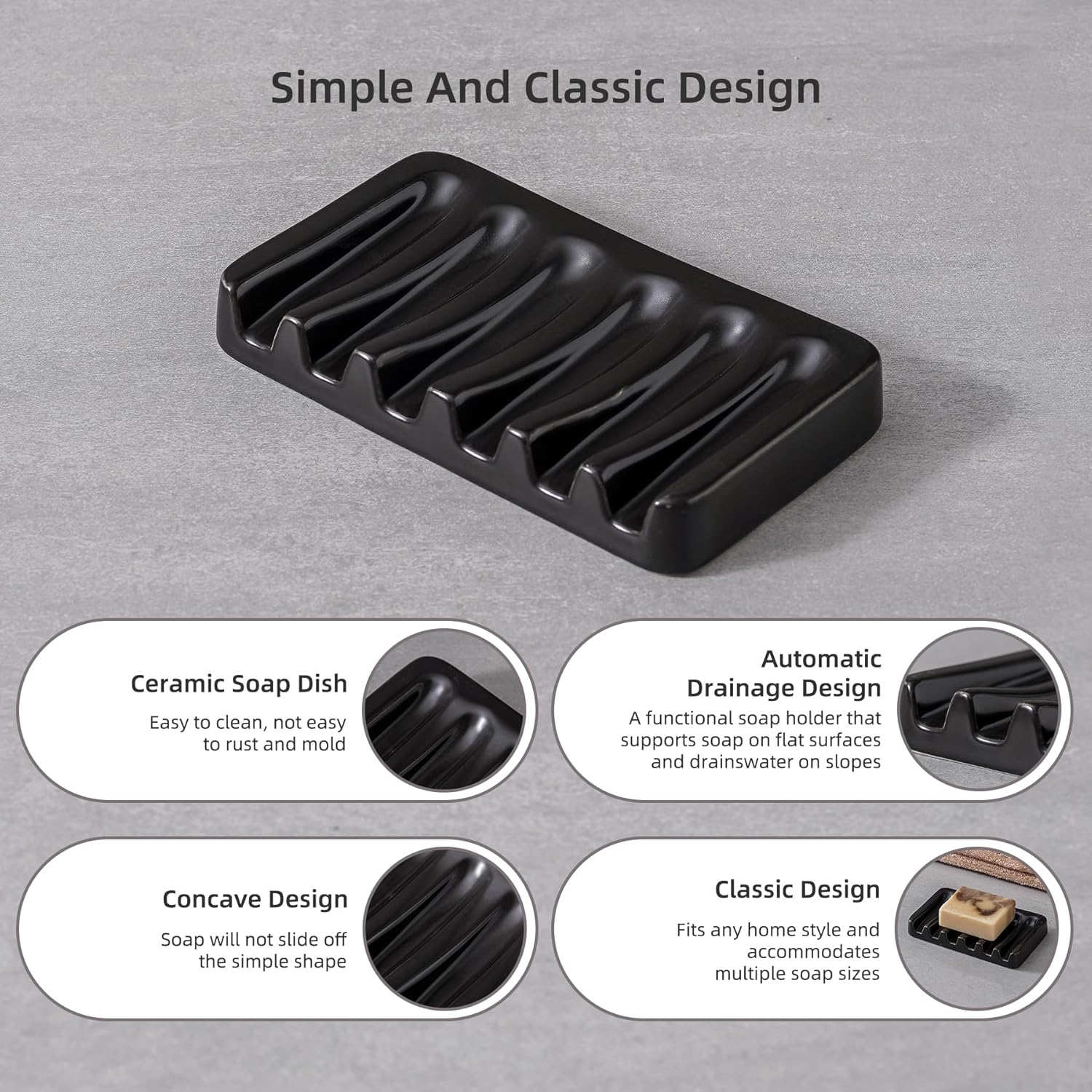 - Self-Draining Design: The ceramic soap dish is inspired by piano keys, and the beveled design allows for better drainage. Keeps soap dry. Prevents soap bars from becoming soft and mushy, extending the life of the soap. No more soggy soap!