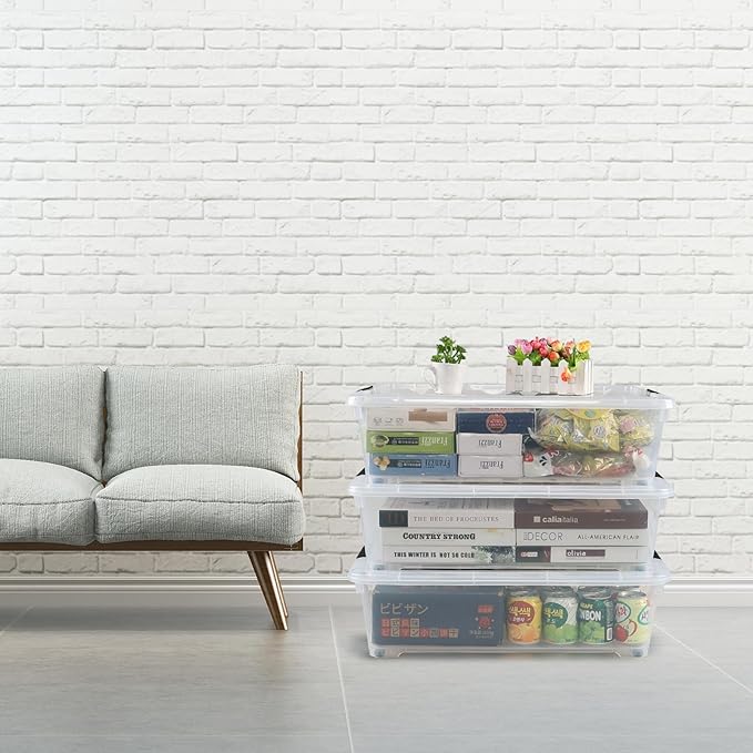 Zopnny 25 Quart Plastic Under Bed Storage Organizer Bin Container with Secure Lids and Durable Buckles, Clear, 3 Pack