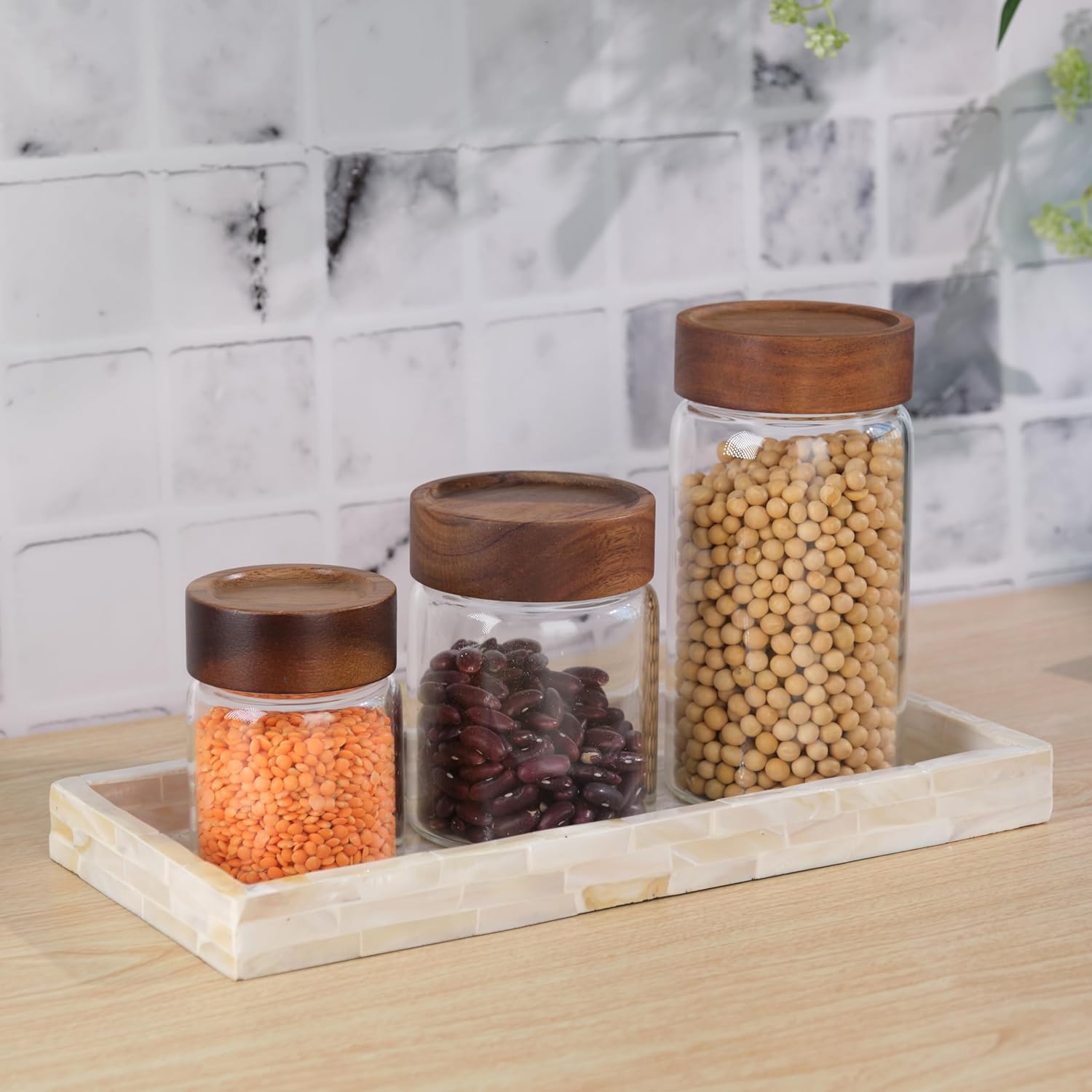 - UNIQUE BAUTY: Elevate your bathroom or kitchen with the PEMAR mother of pearl tray, our trays offer a distinctive natural beauty, giving an exquisite touch of elegance and sophistication to your space. The design blends white minimalism with boho rustic charm seamlessly