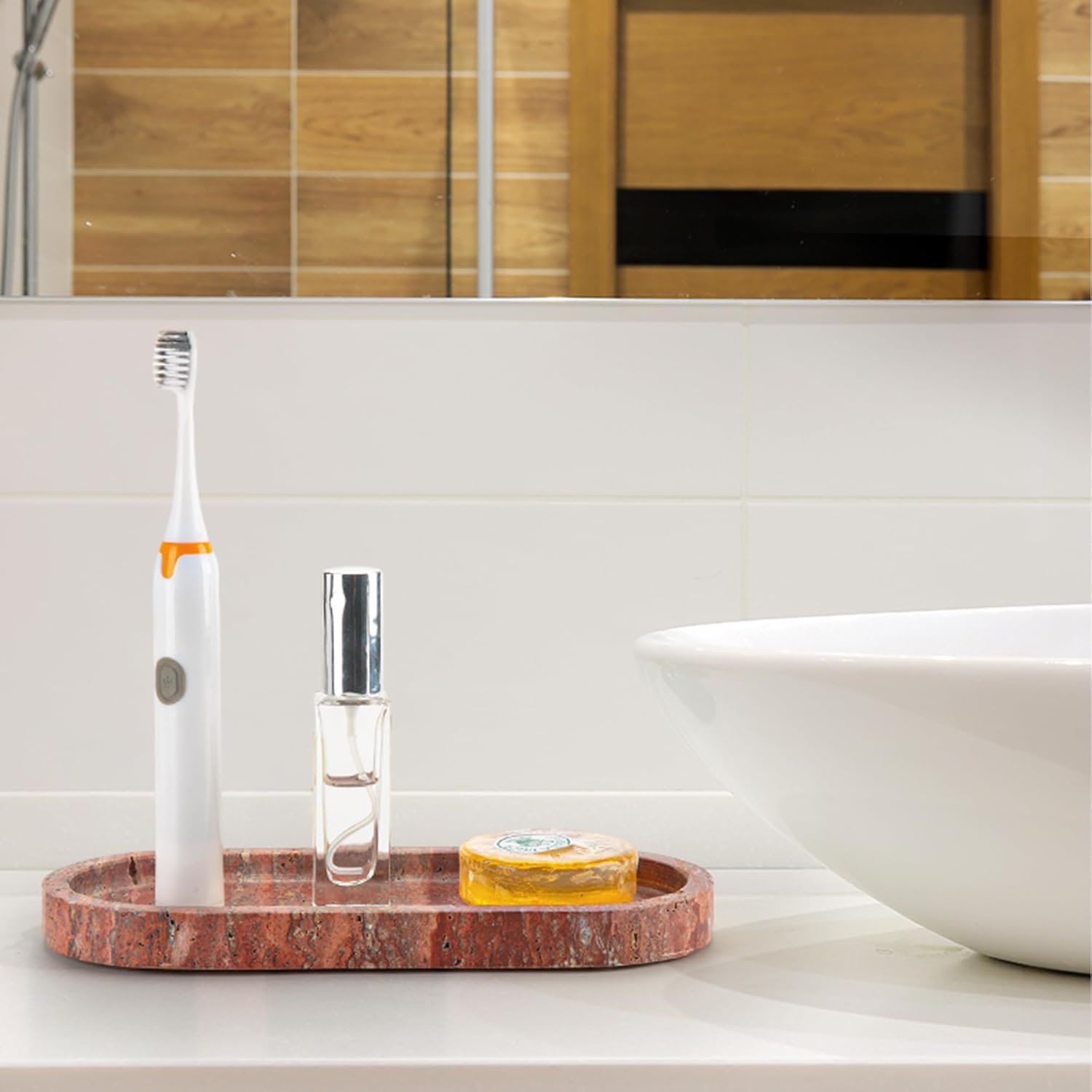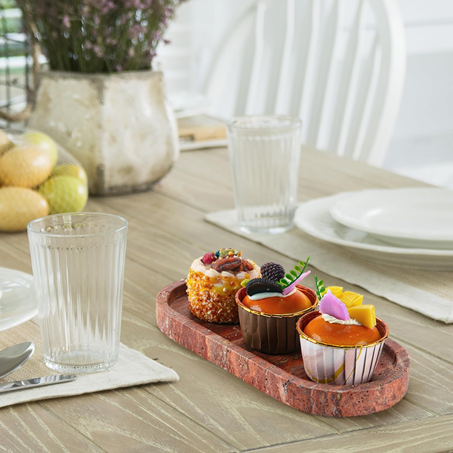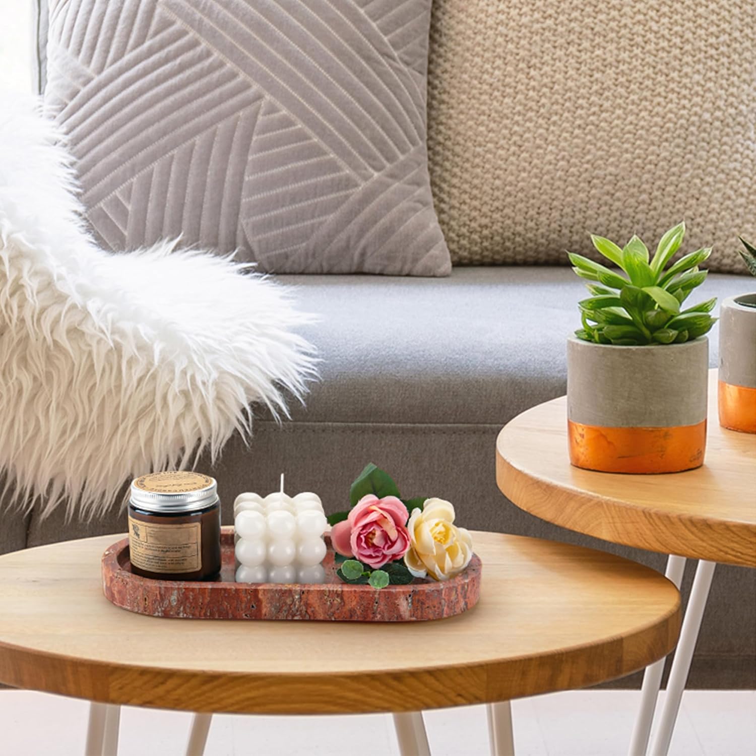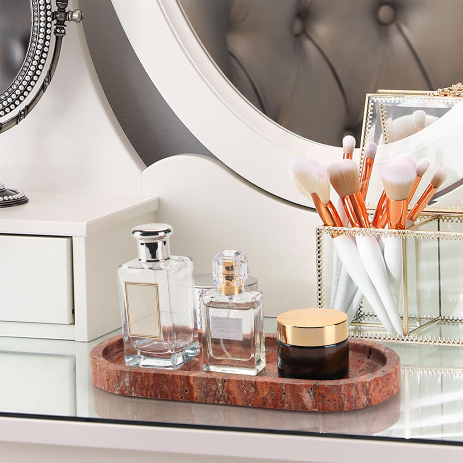 WORHE Italy Natural Travertine Stone Tray for Jewelry, Candles, Perfume, Trinket, Marble Oval Vanity Trays for Bathroom, Dresser, Kitchen, Countertop Storage Organizer for Home Decor Red (WH029)