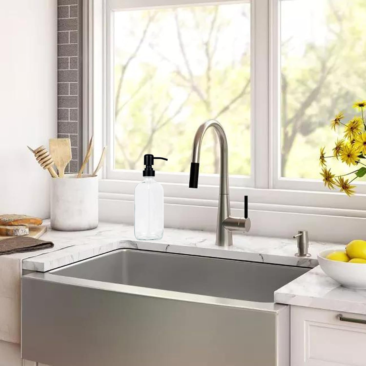 - Sturdy and durable:The soap dispenser bottle is made of thick, high-quality glass, and the black stainless steel rust-resistant pump is durable and rust-resistan