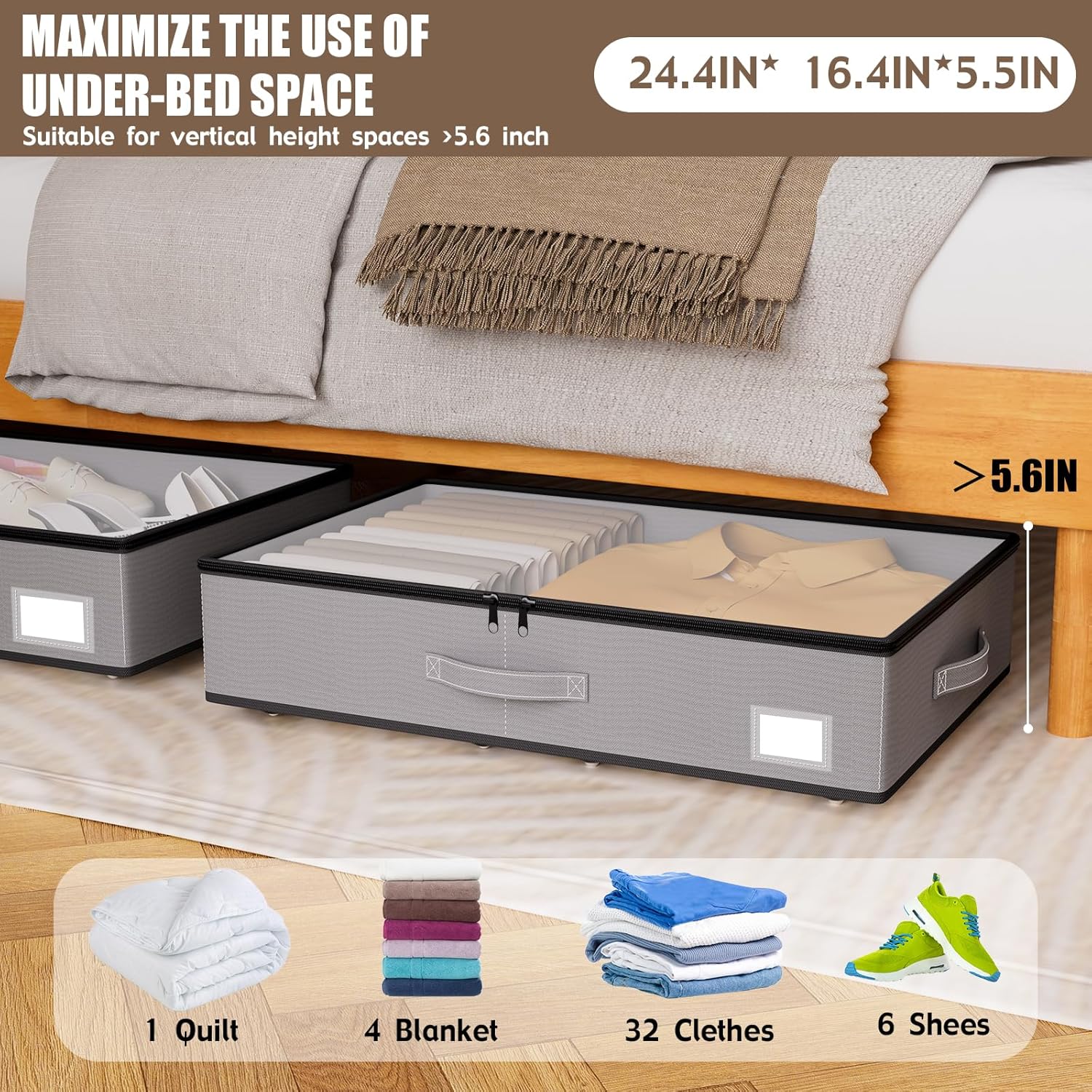 - [No Assemble Required]: Say goodbye to complicated setups. Our under the bed storage with wheels can be used directly without the need for assemble the bottom and wheels. It's incredibly simple and convenient. Plus, the bottom and upper under bed organizer can be separated, offering you more versatile usage options. When the upper storage bins are placed in the cabinet, the bottom plate can be used as a shoe rack alone.
