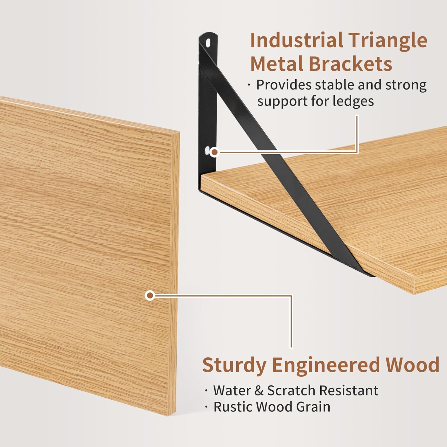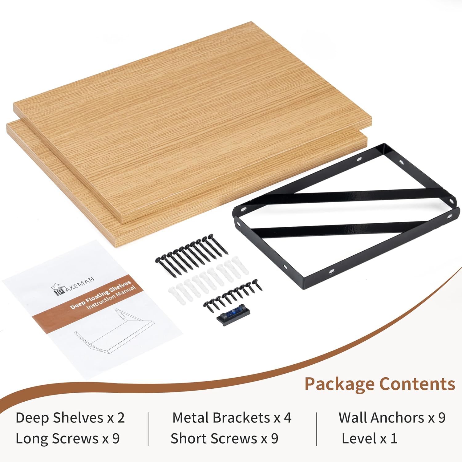 - Heavy Duty Floating Shelves - Axeman deep shelves are made of hardwood with a surface that is easy to clean and maintain. The heavy-duty triangular metal brackets provide strong and stable support for the board effortlessly