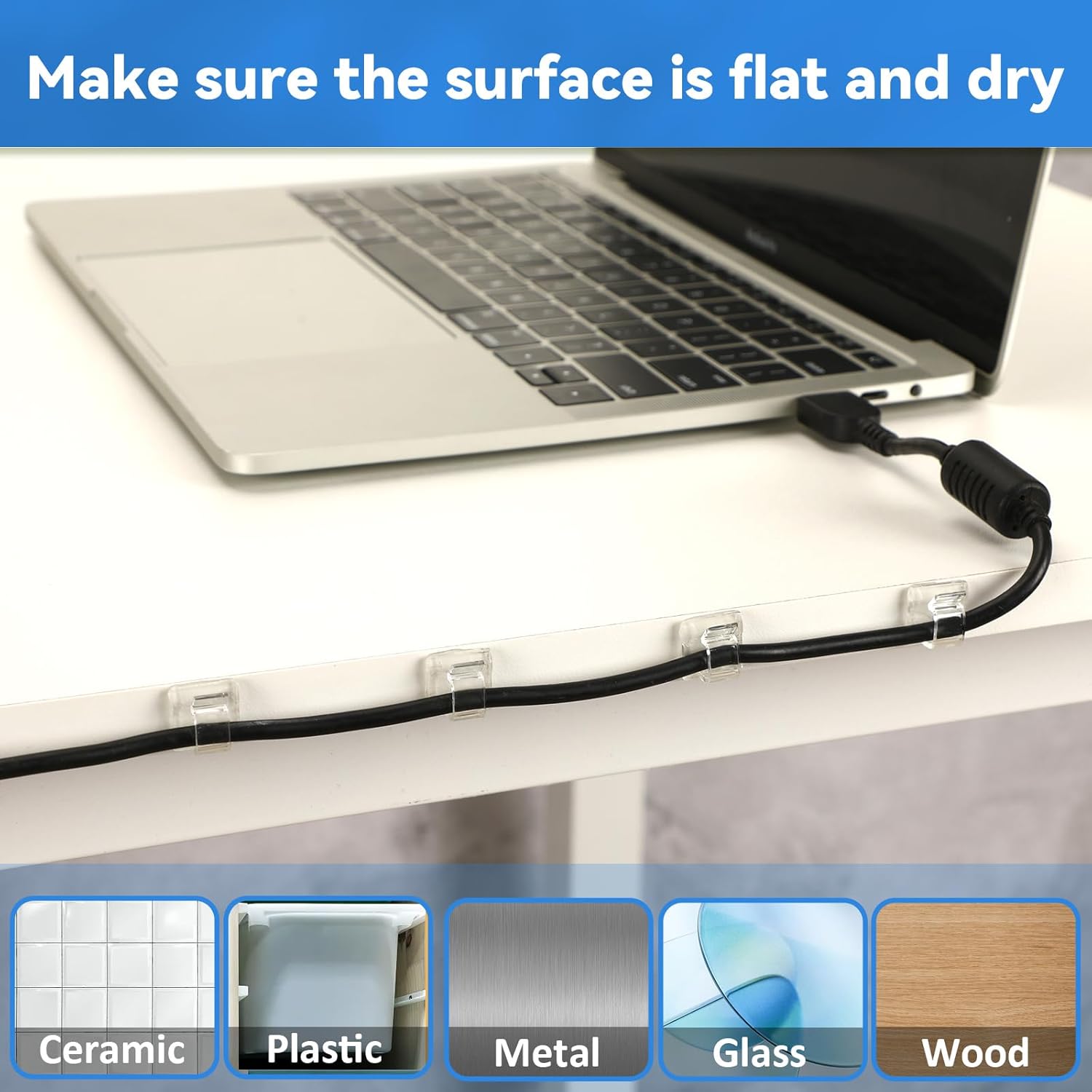 - Self-Adhesive Cable Clips: The cord covers for wires on wall are equipped with a self-adhesive pad, which requires no drilling, is highly viscous and easy to remove, and will not leave any trace on the surface. Clean the installation surface before using the cord clips for wires on wall, stick clips for hanging and press hard for 30 seconds, and wire clips will obtain the maximum adhesion after 24 hours