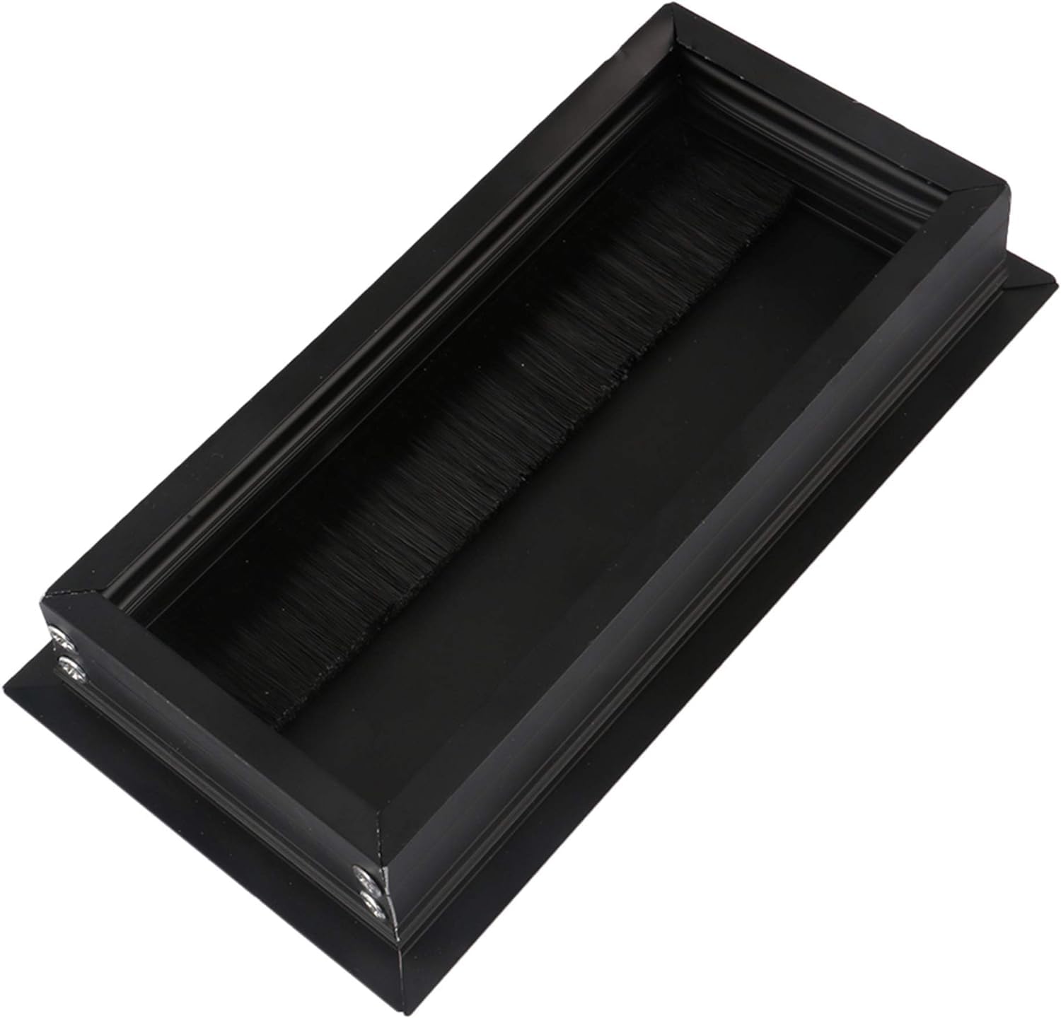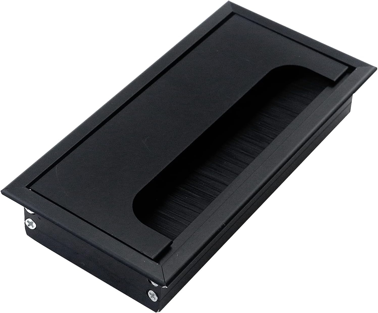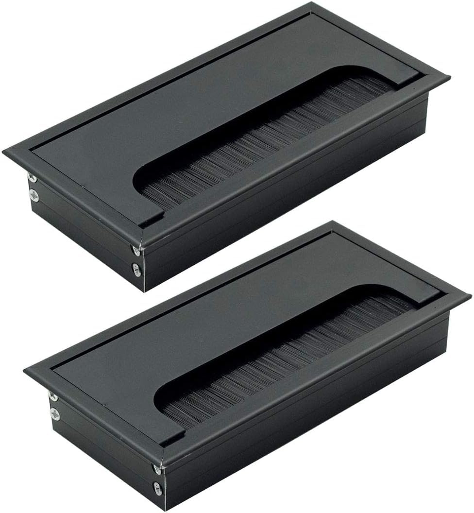 2PCS Desk Grommet Metal Rectangle Desk Cord Cable Hole Cover Grommet with Brush for Home Office Bank Computer Table (black)