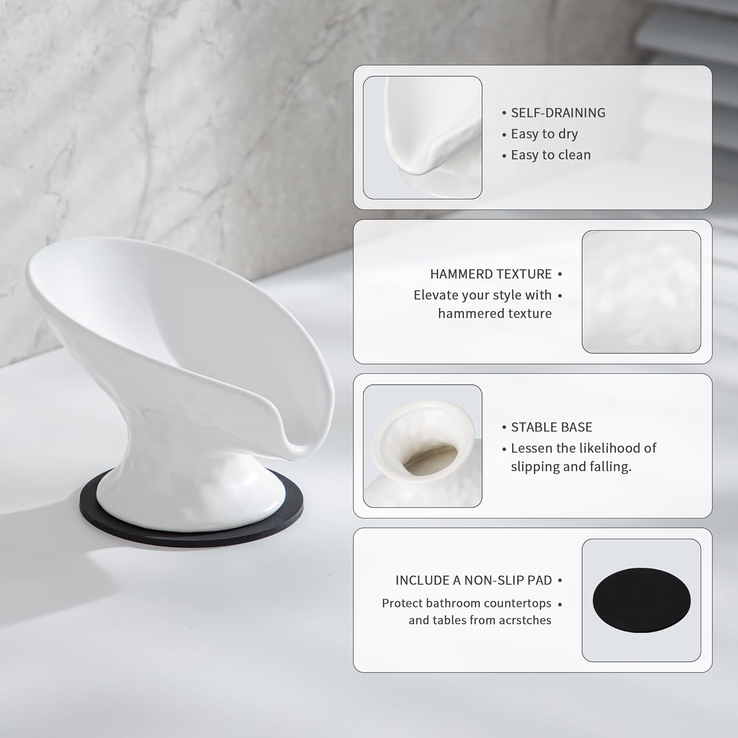 - High-Quality White Soap Holder:Say goodbye to flimsy plastic, germ-prone wood, and unattractive metal. Our bathroom soap holder self-draining is crafted from premium ceramics, offering durability, easy cleaning, and timeless style for your bathroom.