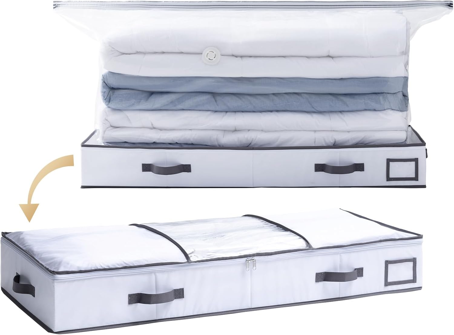 - Super Large Capacity: The under-bed storage box comes with a jumbo size space saver bag (53*27.5*17.7 inches), holding 3-4 king-size comforters, 4-5 pillows, and 3-4 quilts, double safe belts secure better storage and protection