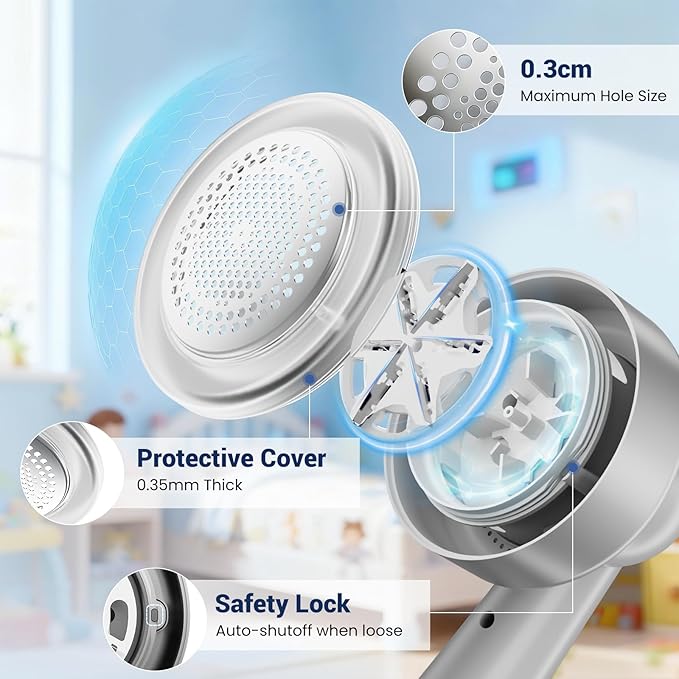 - 【Powerful and Efficient】 The fabric shaver and lint remover combines 6-tooth of stainless steel sharp blade ensures safe and effective removal without damaging your garments. The sweater shaver is equipped with a high-speed motor, reaching up to 15000r/min, allowing it to effortlessly remove lint, pills, and fuzz from your clothes, which is 80% faster than similar fabric shavers on the market.