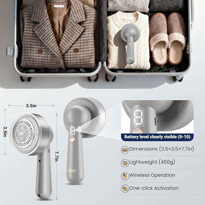 - 【Largest Shaving Surface Ever】With an extra-large shaving surface, DBC fabric pilling remover covers a larger area in less time, making your lint-removing tasks quick and efficient. It takes only 1 minute for trimming clothing, but other takes more than 5mins. It is designed to handle various fabrics like clothes, sweaters, scarves, socks, plush toys, sofas, carpets, cushions, curtains, linens, and bedding.