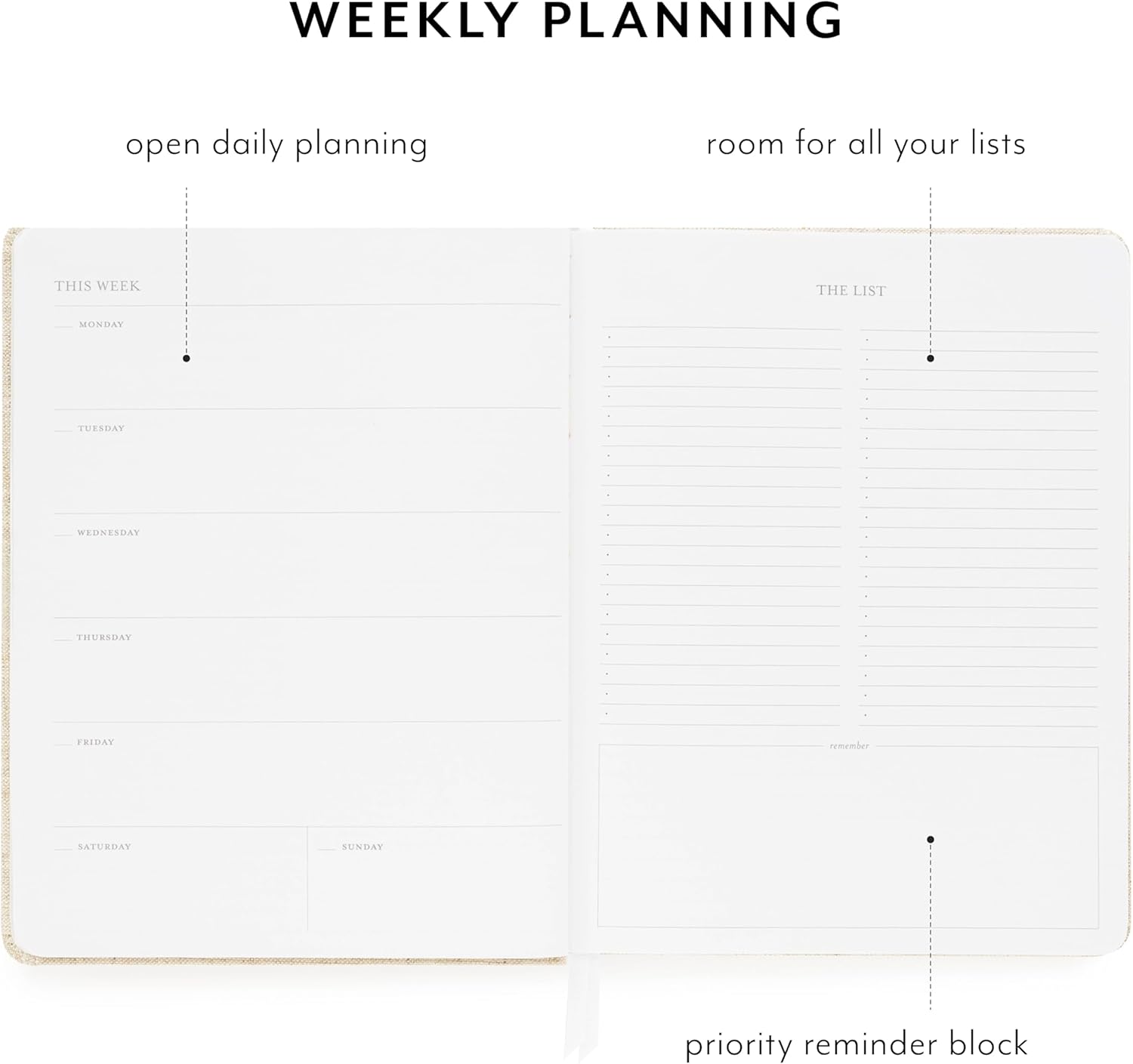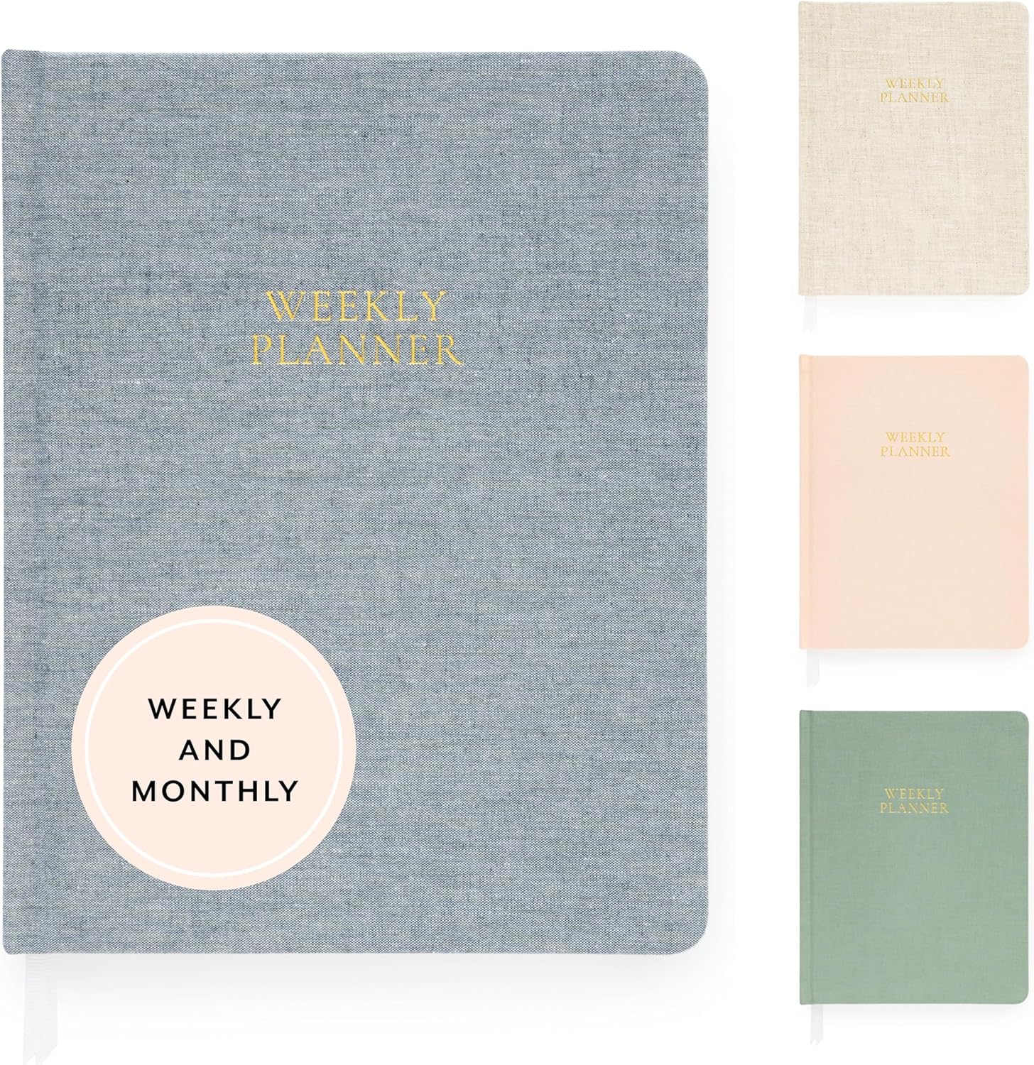 Sugar Paper Undated Weekly Planner, Fabric Cover, 7x9 Inches, Hardcover Weekly Planner (Chambray)