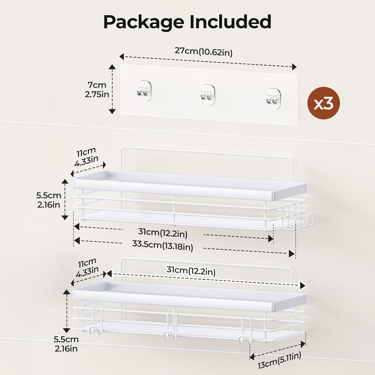 - What You Get: 2 x Shower Caddy, 3 x Adhesive, 1 x Manual, 100% satisfaction customer service!