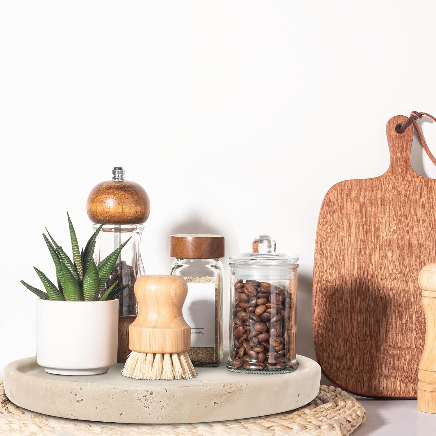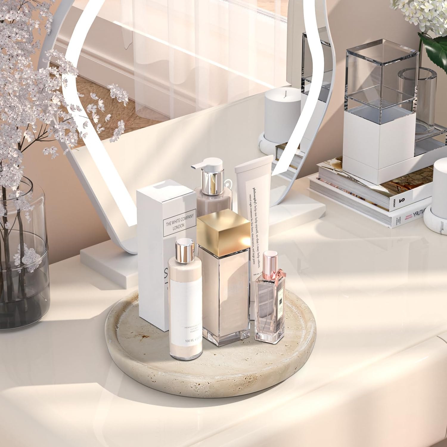 Travertine Tray, Small Ceramic Vanity Tray for Bathroom Counter Decor, Round Marble Decorative Trays for Coffee Table (Beige, Large Size)
