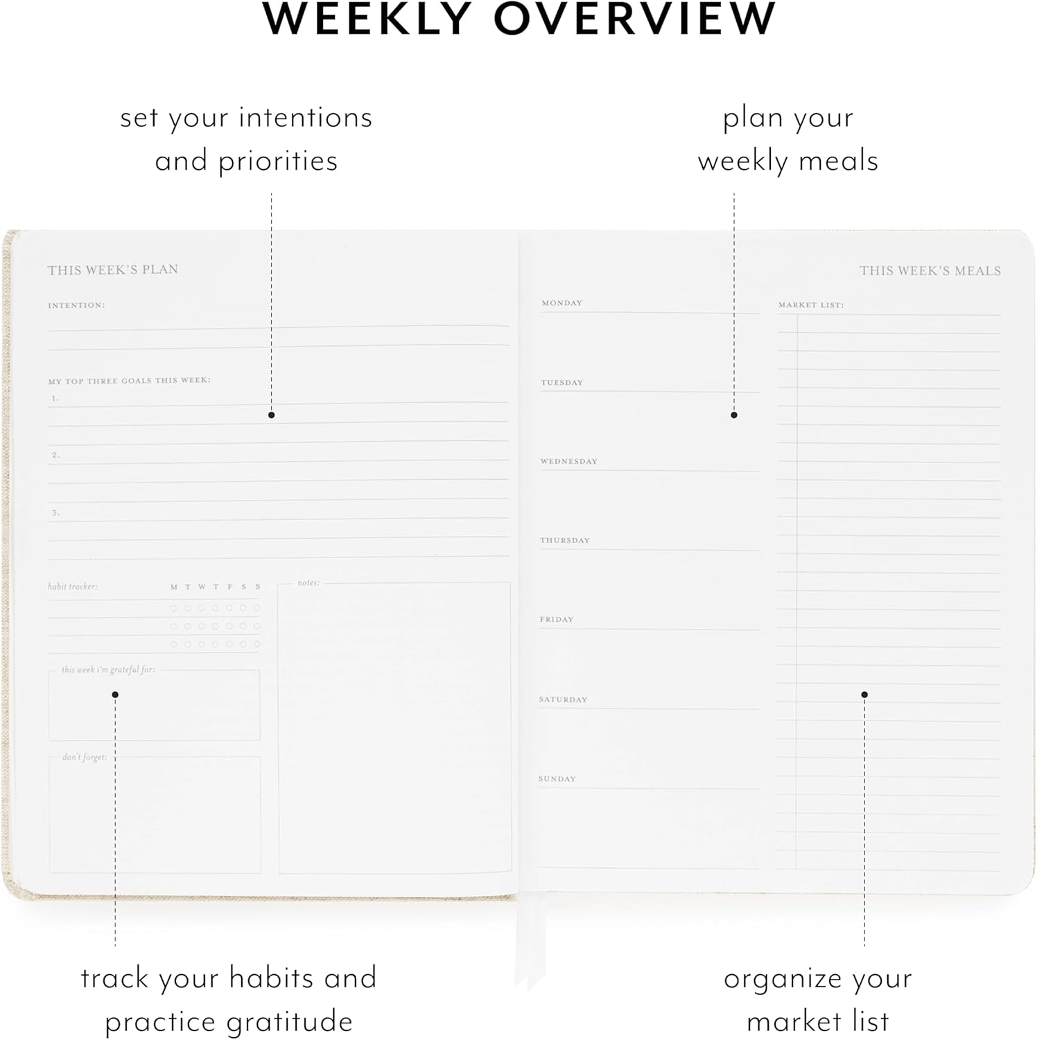 Sugar Paper Undated Weekly Planner, Fabric Bound Hardcover, 7" x 9", 3 Months, Pale Pink