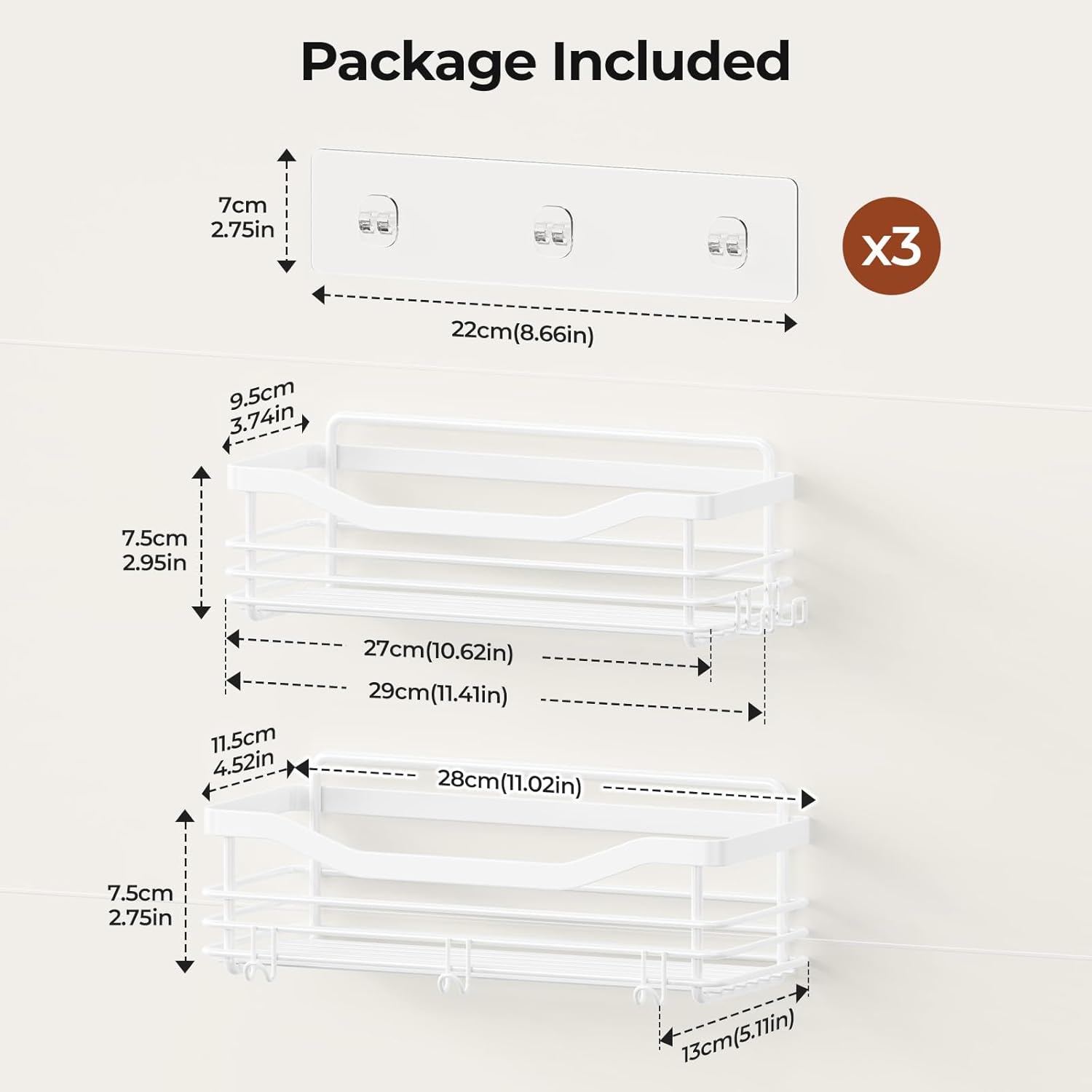 - What You Get: 2 x Shower Caddies, 3 x Adhesives, 1 x Manual, warmly customer service.