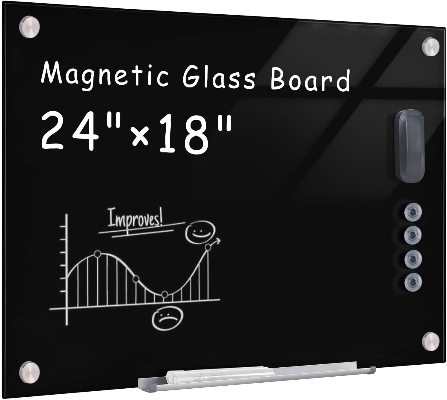 - ✔ 【Strong Magnetic Capabilities】Featuring a steel-backed surface, our board includes 4 super-strong magnets designed specifically for glass boards. Easily post documents, notes, or reminders—perfect for meetings, brainstorming, or home organization. (Standard magnets may not work due to glass thickness.)