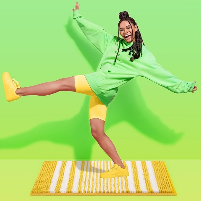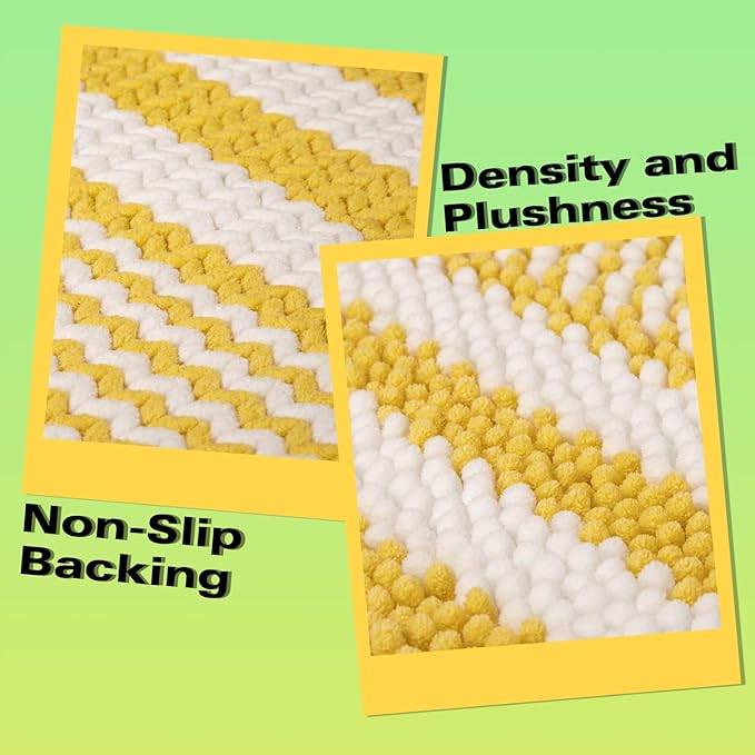 Tindbea Bathroom Rugs Set 2 Piece, Extra Soft and Absorbent Fluffy Striped Chenille Bath Mat Rug Set, Non Slip Bathroom Floor Mat, Machine Washable (20" x 32" Plus 16" x 24", Yellow)