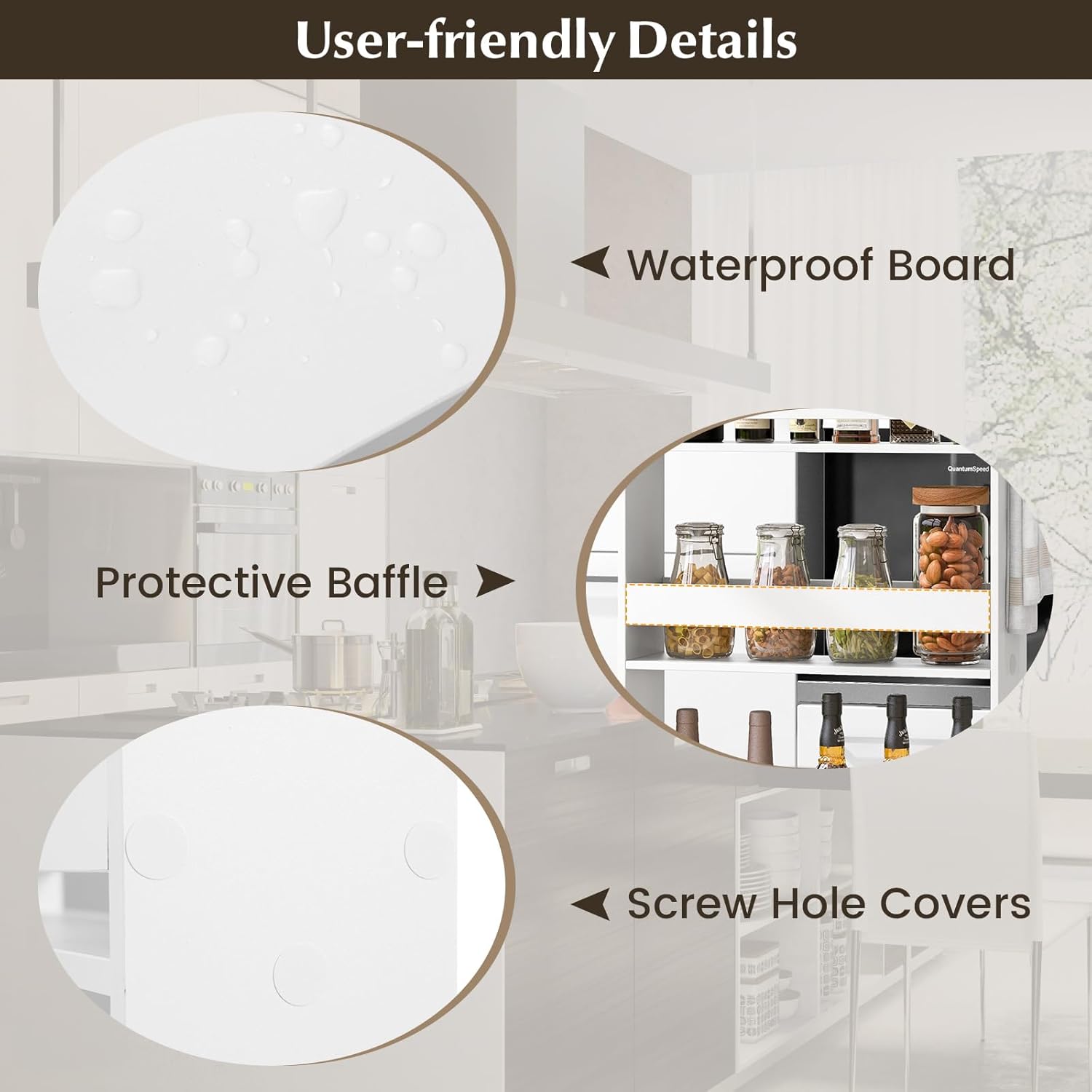 - 4-Tier Storage Space: Featuring 3 open shelves and a rectangular top, this cart provides plenty of space for you to categorize and store kitchen spices, canned goods or laundry supplies. In addition, the anti-fall guardrails prevent the items from falling down to ensure the safety of your items.